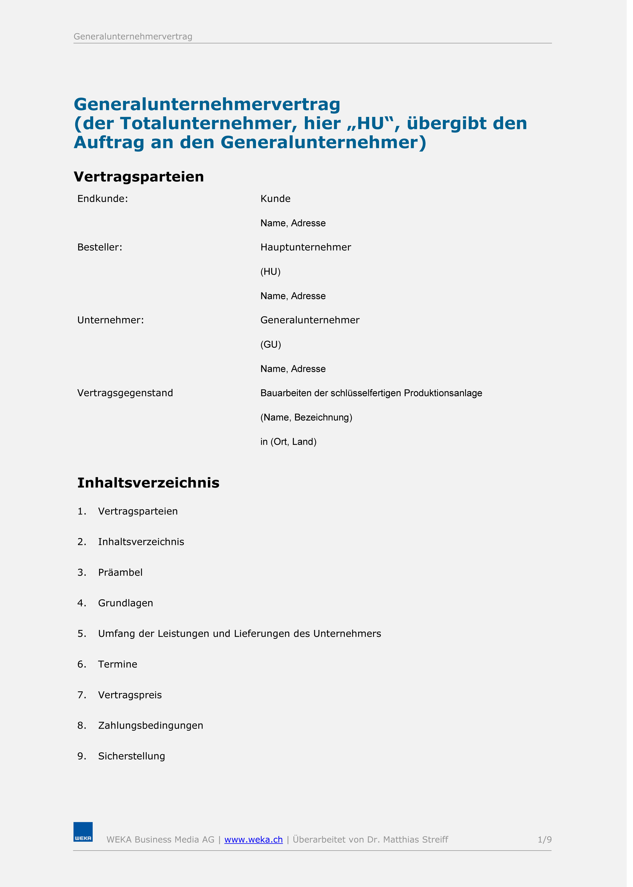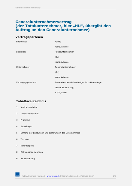 - Muster Generalunternehmervertrag