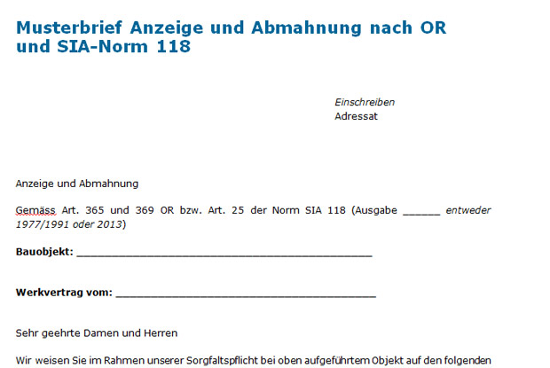- Musterbriefe rund um das Bauwesen