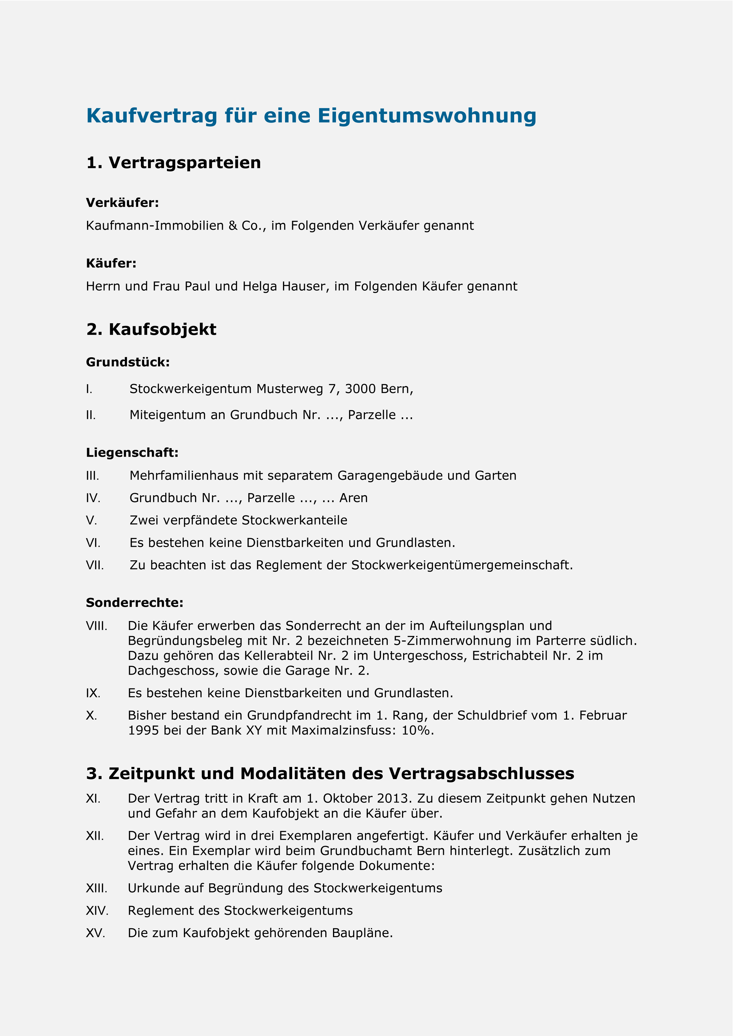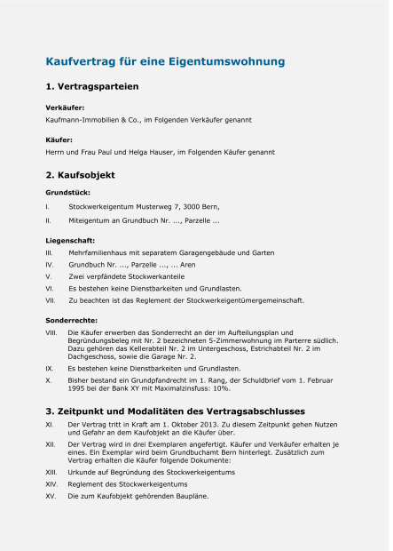 - Sie regeln sicher alle wichtigen Vertragspunkte: Vertragsparteien, Kaufsobjekt, Zeitpunkt und Modalitäten des Vertragsabschlusses, Kaufpreis, Rechte und Pflichten der Käufer, Schlussbestimmungen.