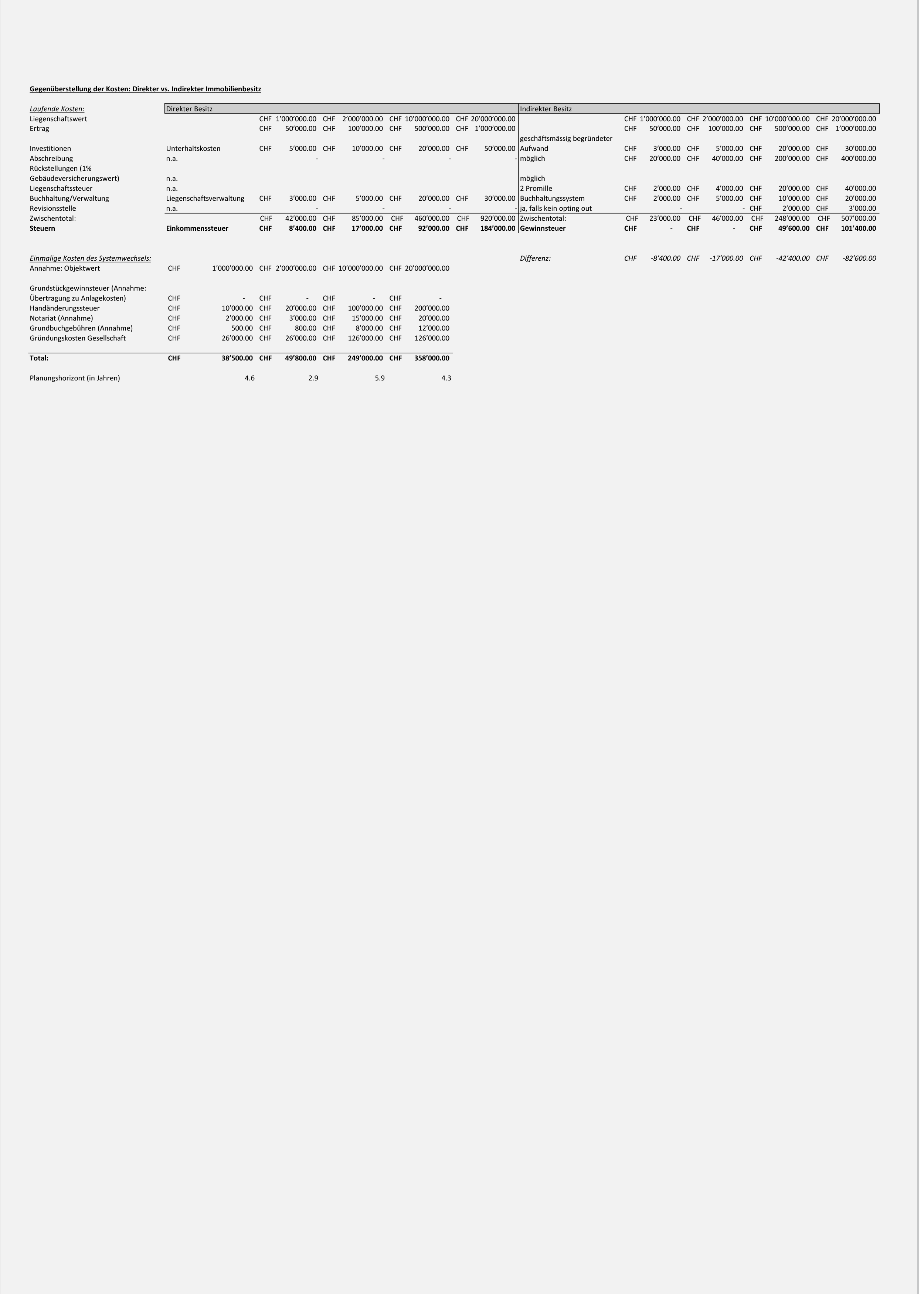 - Sie vergleichen die Gesamtkosten von einem direkten und einem inndirektem Immobilienbesitz