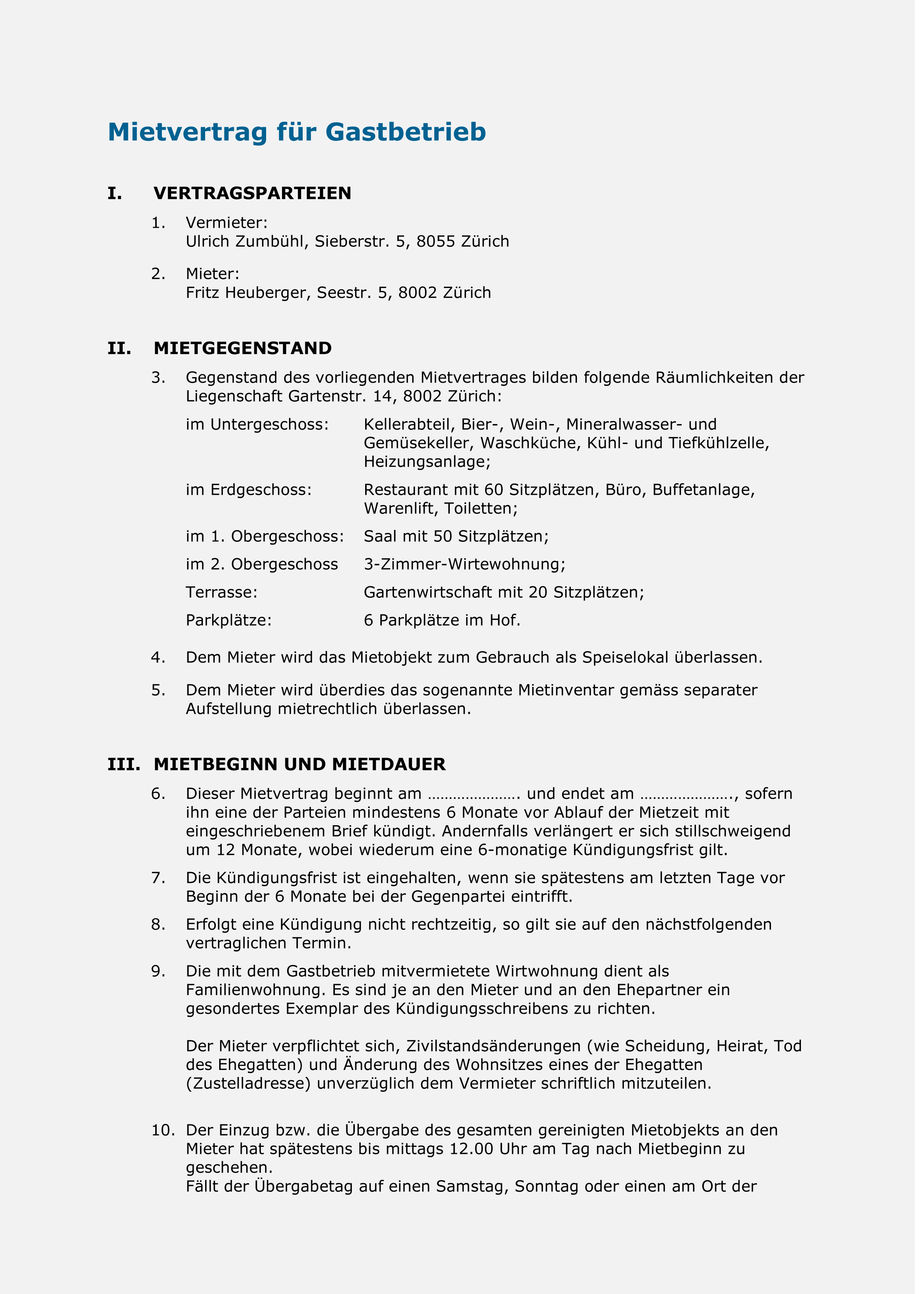 - Sie schliessen rechtssicher einen Vertrag über die Vermietung von Räumlichkeiten zum Gebrauch als Speiselokal ab.