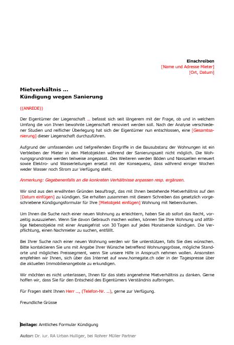 - Musterbriefe Mietzinsveränderung und Kündigung