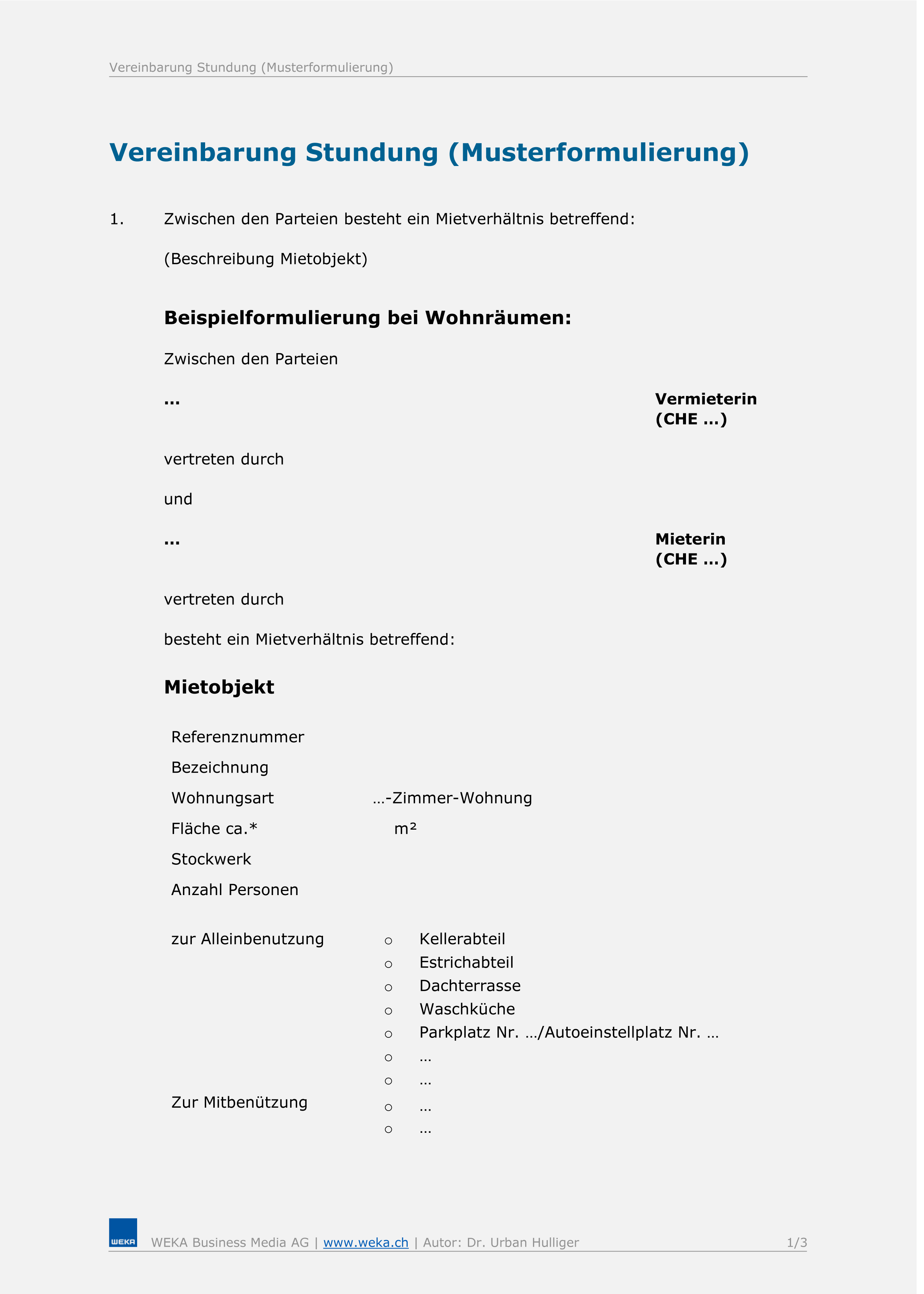 Zurzeit ist die Situation auf dem Mietmarkt aufgrund der Corona-Epidemie sehr angespannt. Die Rechtslage ist unklar. Mit dieser Vereinbarung kann der Mietzins gestundet, d.h. dessen Fälligkeit hinausgeschoben werden. Dem Mieter wird so Liquidität zur Verfügung gestellt. Der Vermieter seinerseits muss auf keine Ansprüche verzichten.