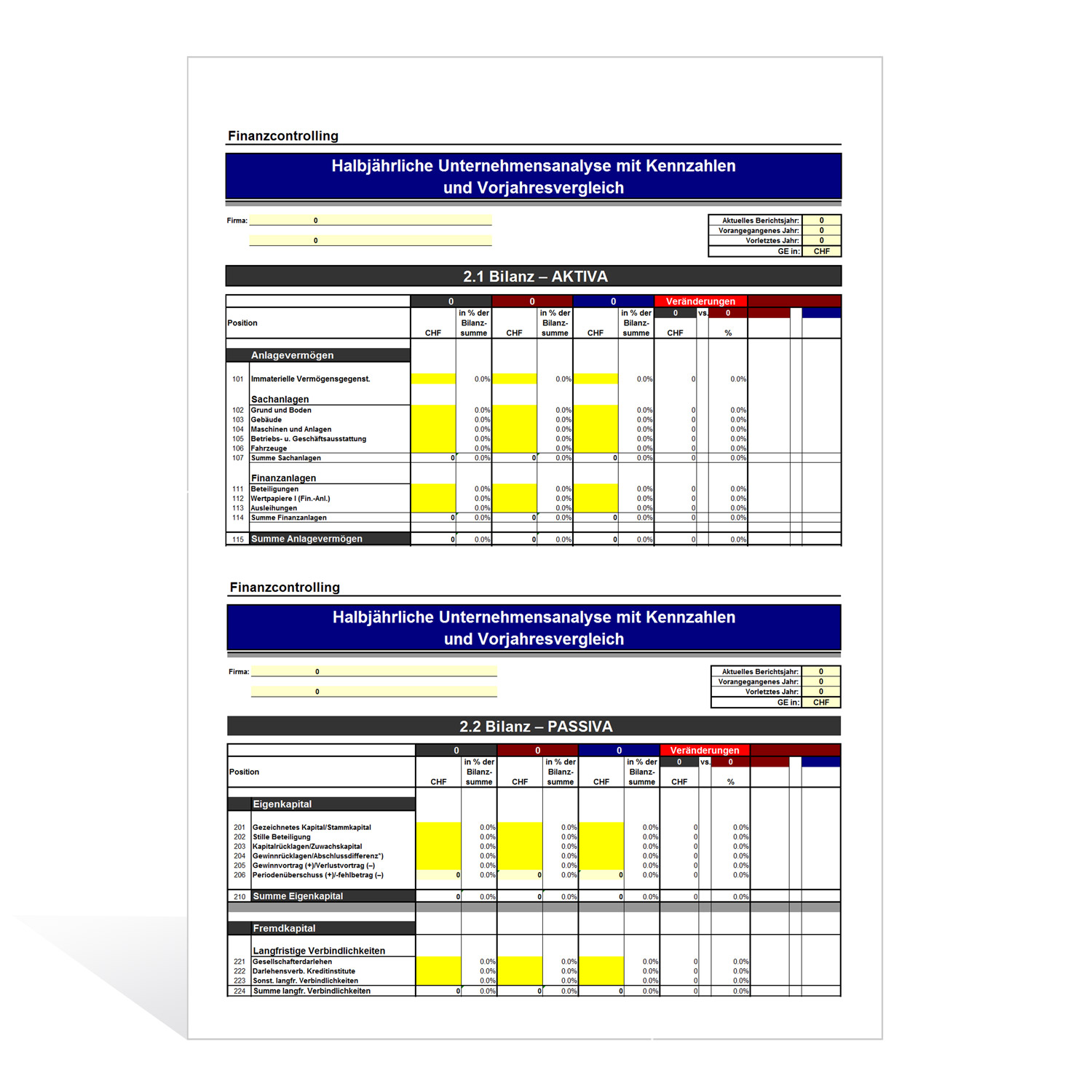 - Halbjährliche Unternehmensanalyse mit Kennzahlen und Vorjahresvergleich