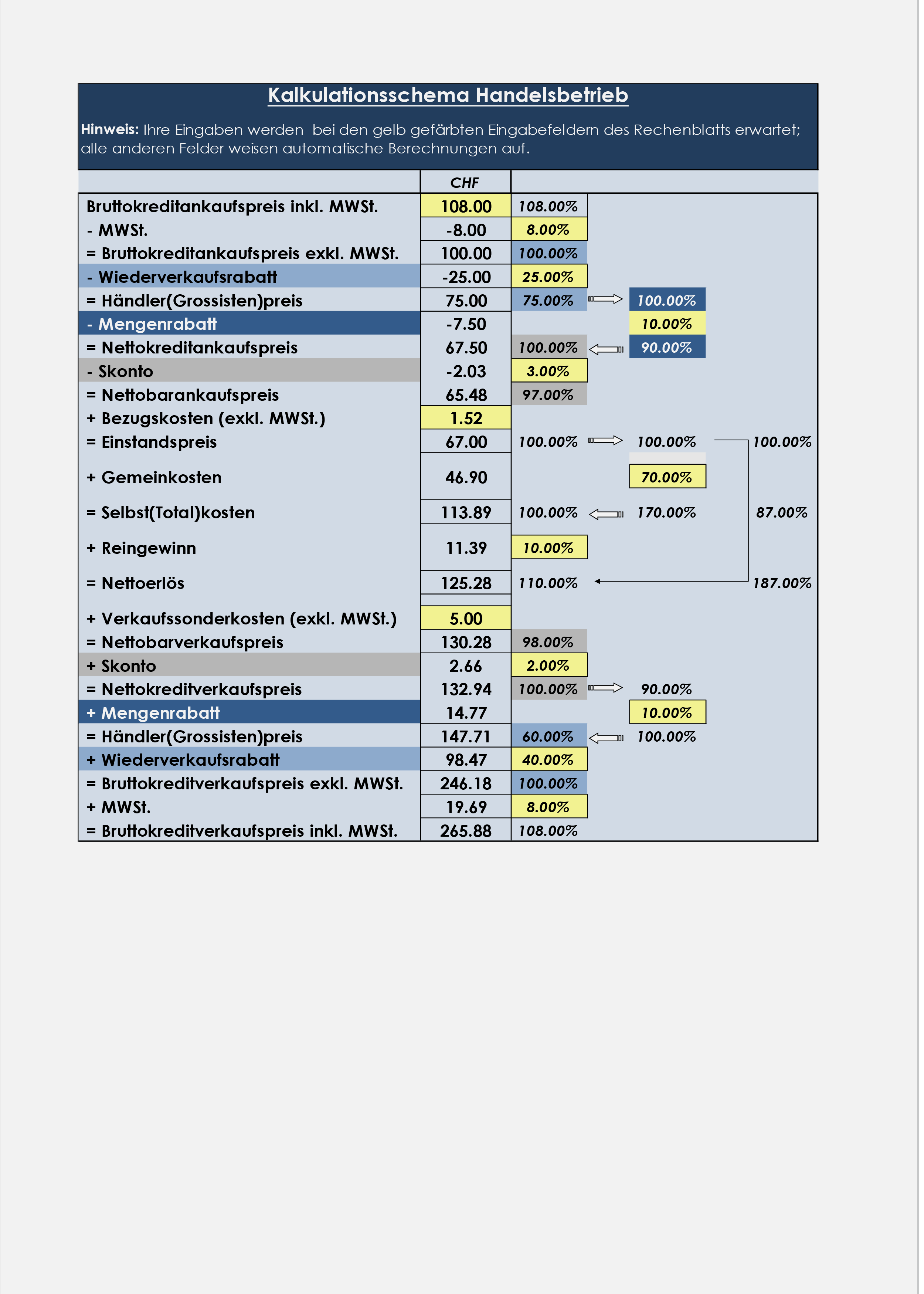 - Sie kennen alle typischen Kalkulationsschritte für Handelsunternehmen