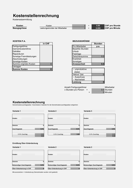 - Sie berechnen die effektiven Kosten der Kostenstellen pro Minute und Stunde.
