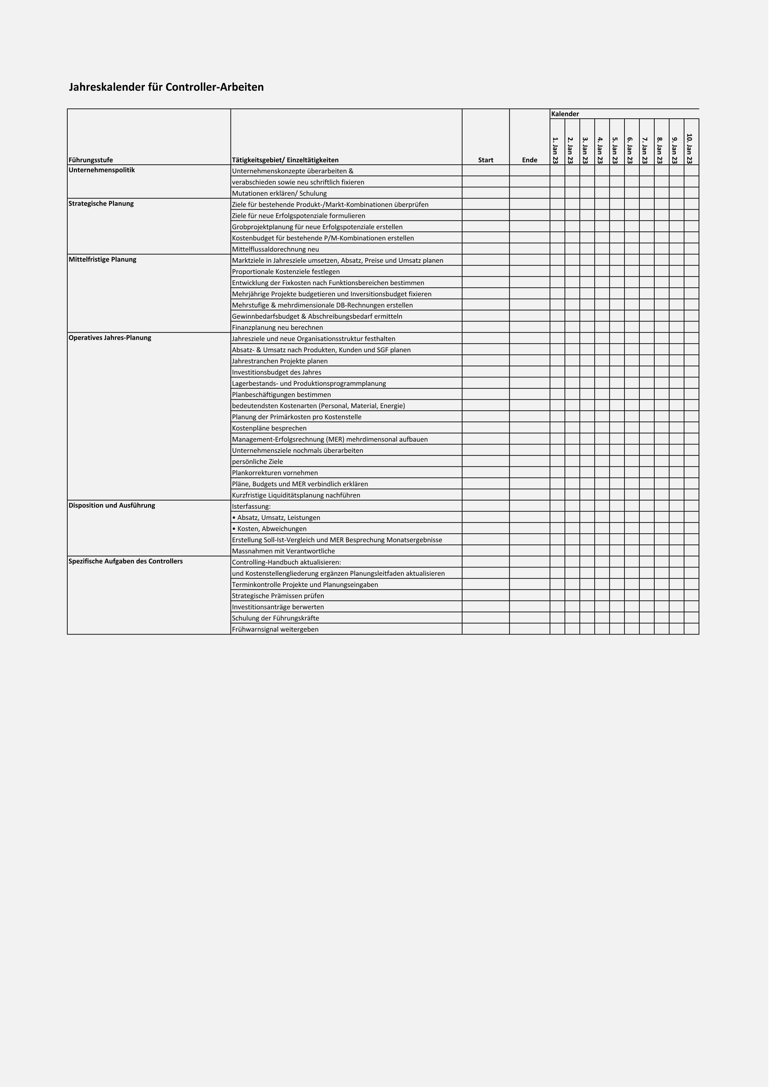 - Mustervorlage Jahreskalender für Controllingaufgaben
