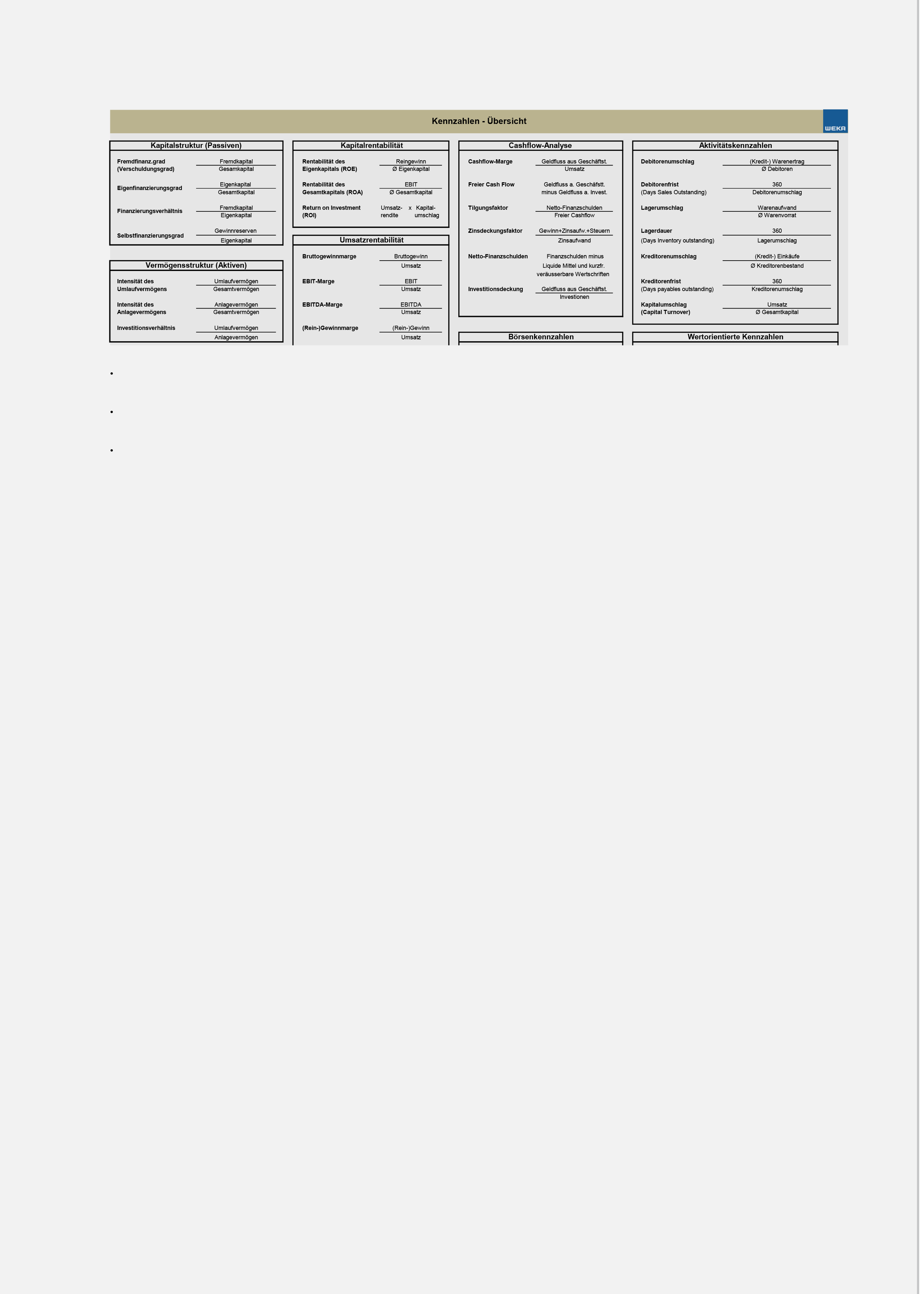 - Berechnungsformeln zu gängigen Finanzkennzahlen