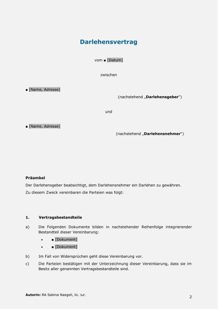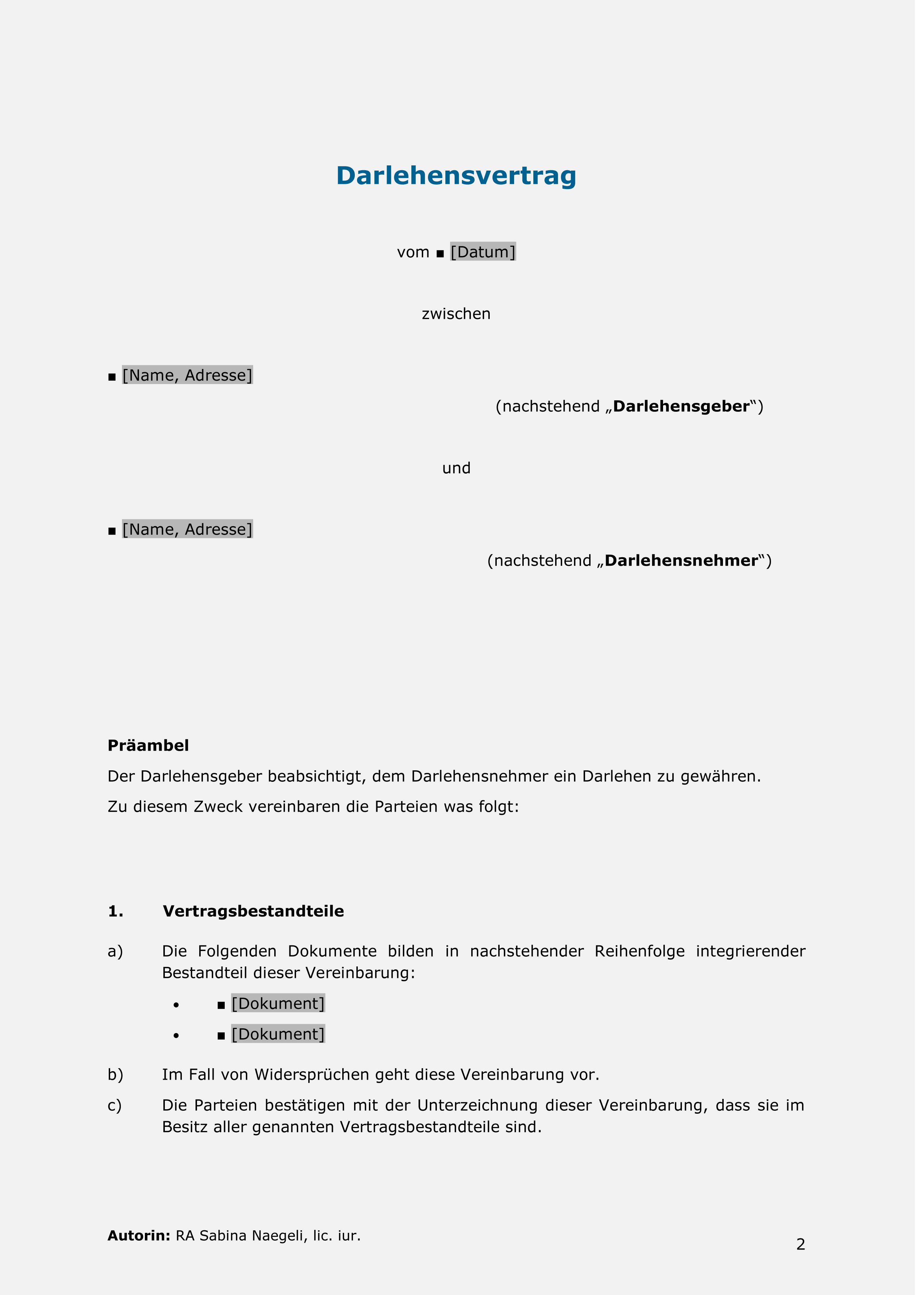 - Sie regeln die Darlehensgewährung und den Zins vertraglich wasserdicht.