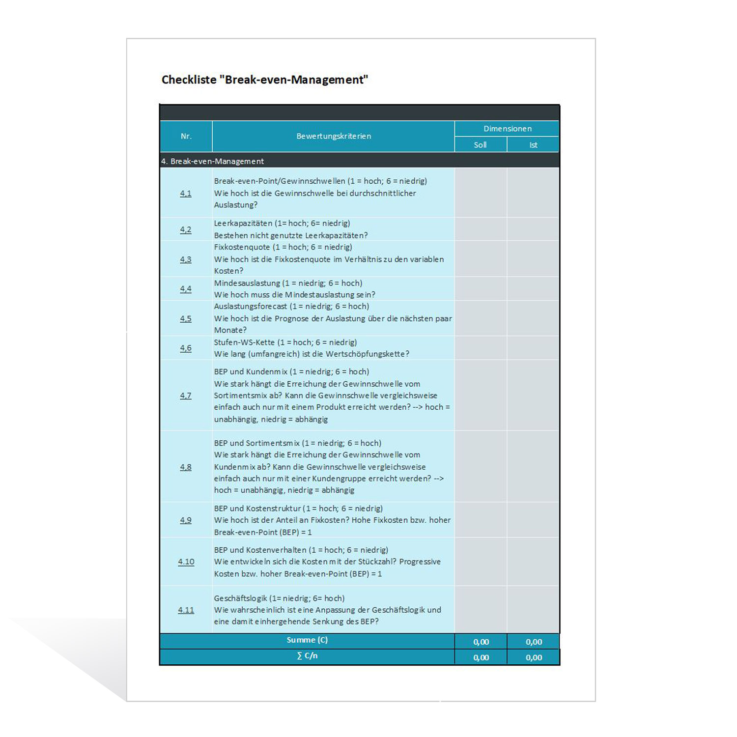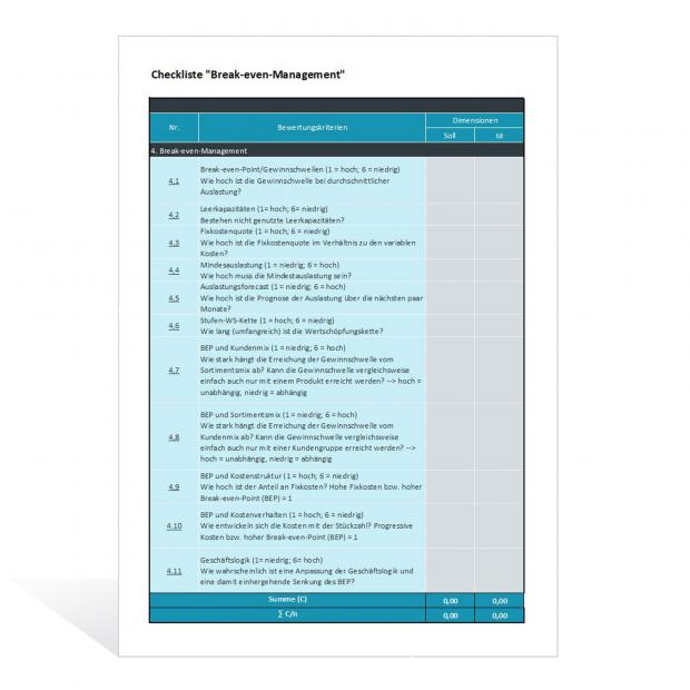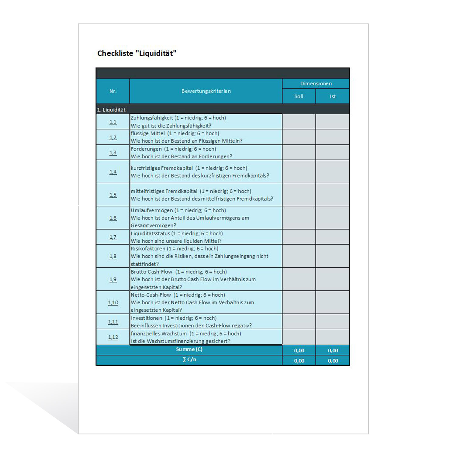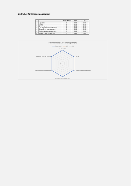 Dieses Excel-Tool hilft Ihnen mittels eines finanziellen Radarsystems die sechs Handlungsfelder und entsprechenden Stellhebel zu analysieren und anhand von Checklisten erprobte Handlungsanweisungen und Umsetzungsempfehlungen abzuleiten.