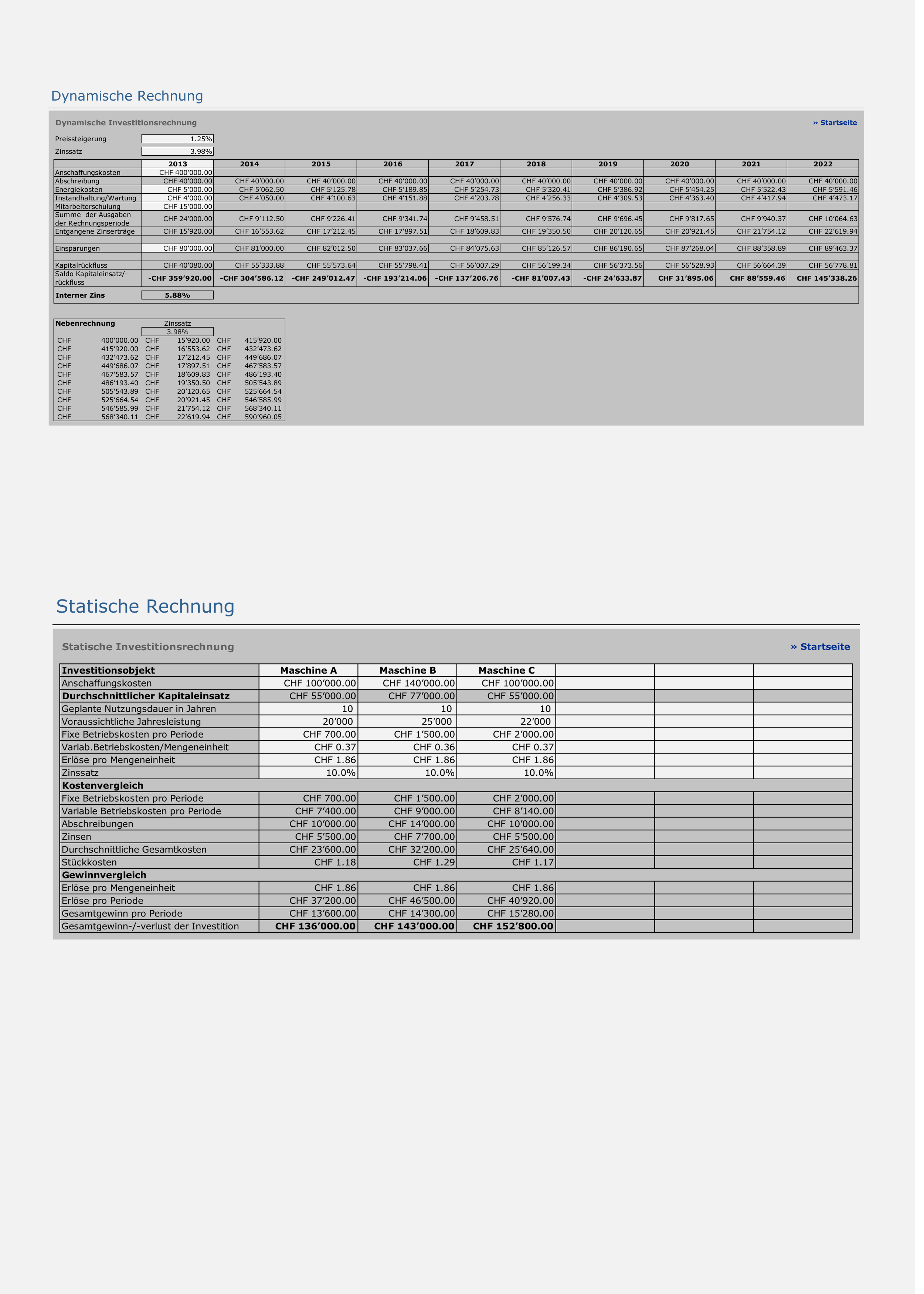 - Sie profitieren von sofort einsetzbaren Musterlösungen für statische und dynamische Investitionsrechnungen.