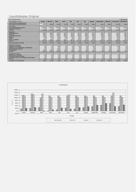 So erhalten Sie jeweils den Liquiditätsendbestand je Monat, der dann wieder als Anfangsbestand für den Folgemonat dient.
