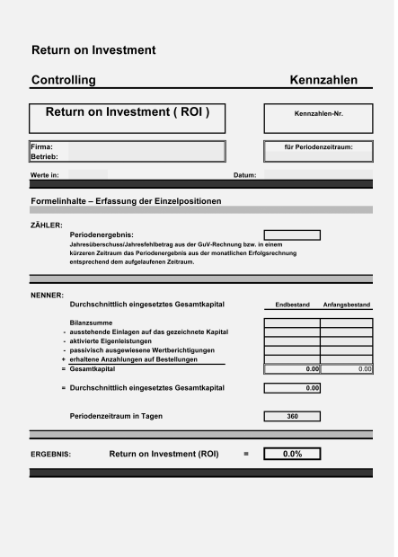 Der Begriff Return on Investment bezeichnet ein Modell zur Messung der Rendite einer unternehmerischen Tätigkeit, gemessen am Gewinn im Verhältnis zum eingesetzten Kapital. Der ROI beschreibt als Oberbegriff für Renditekennzahlen sowohl die Eigenkapitalrendite (Return on Equity, kurz ROE) als auch die Gesamtkapitalrendite.