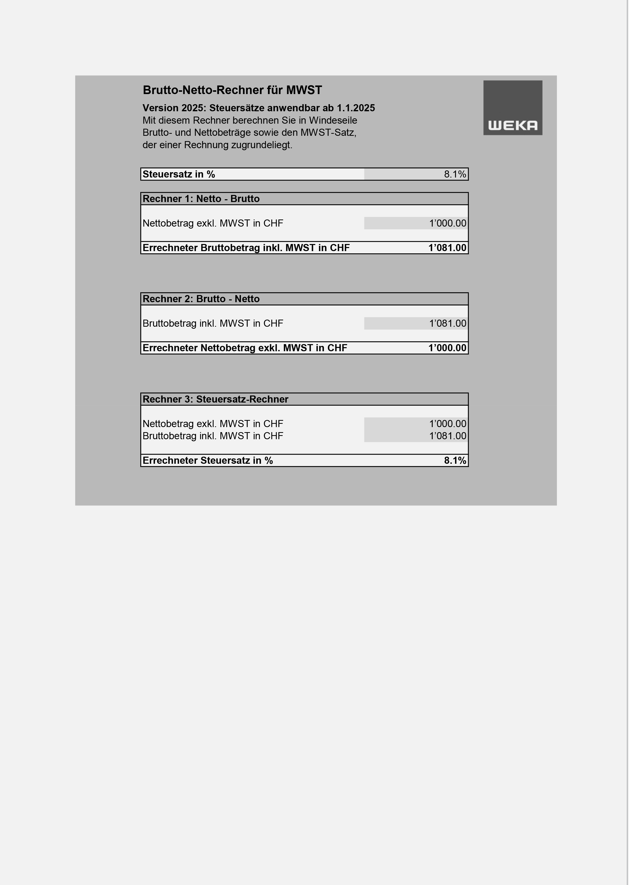 - Sie rechnen Brutto- und Nettobeträge blitzschnell und korrekt um.