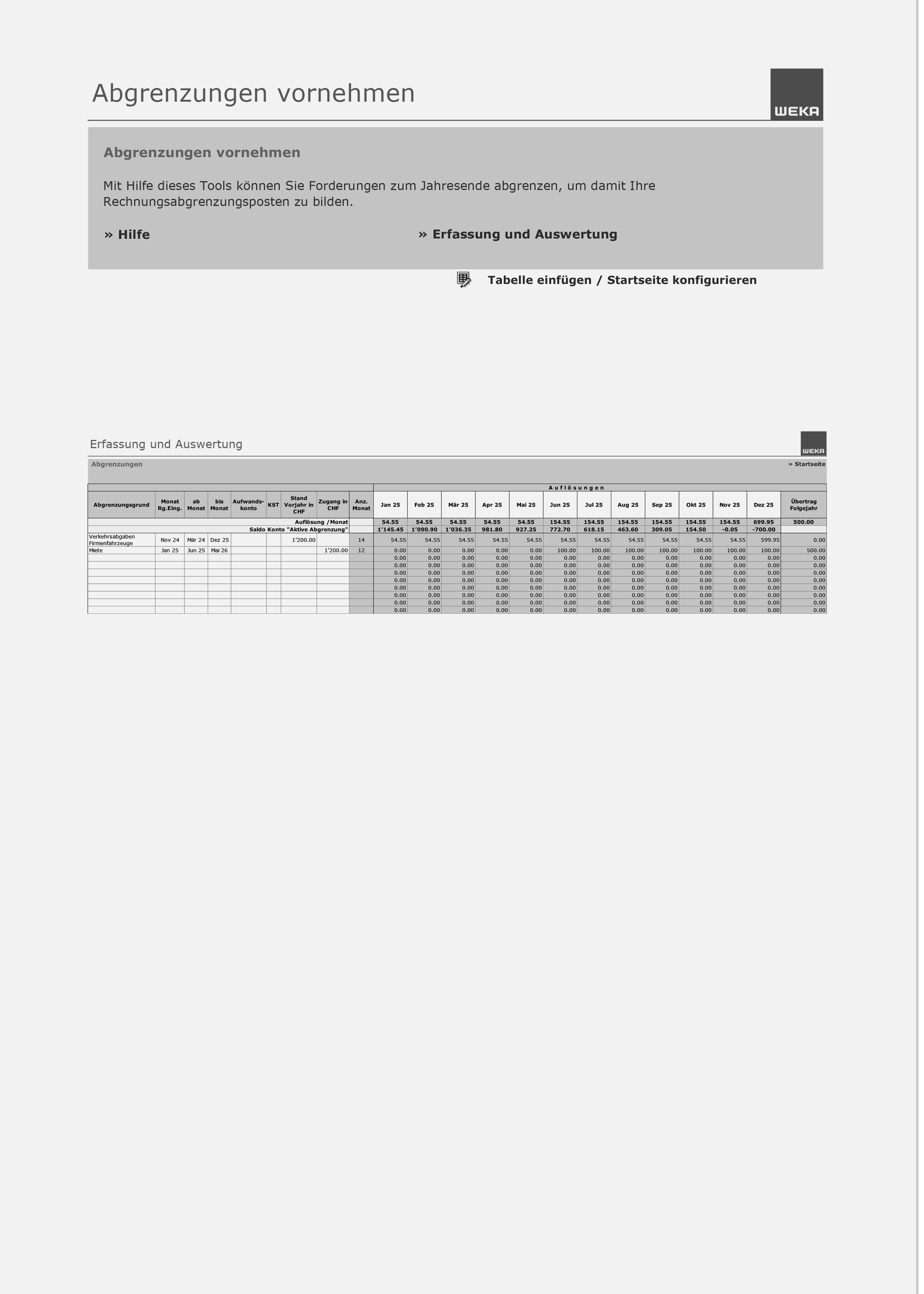 Mit diesem Excel-basierten Tool erfassen Sie systematisch Ihre Forderungen zum Jahresende und grenzen diese korrekt ab. So stellen Sie sicher, dass Ihre Rechnungsabgrenzungsposten (RAP) vollständig, nachvollziehbar und prüfungssicher gebildet werden.