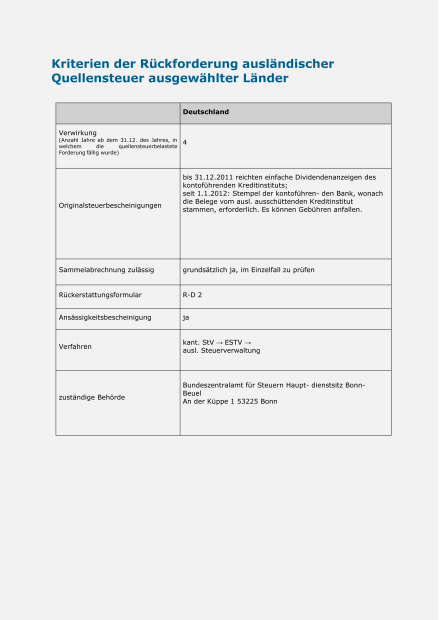 - Checkliste Kriterien der Rückforderung ausländischer Quellensteuer