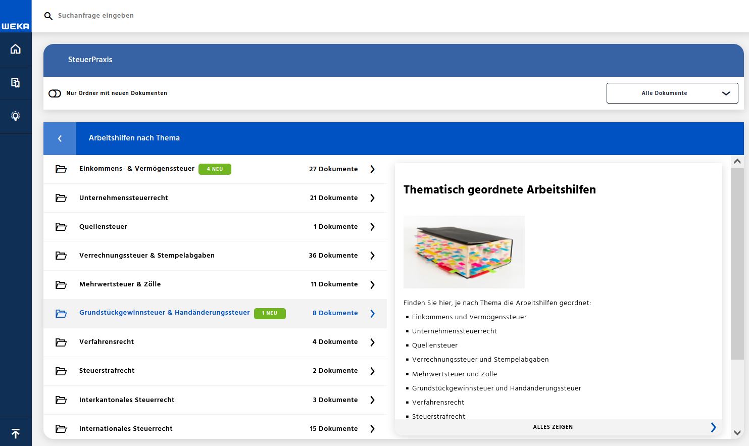- Sie behalten den Überblick dank Suchfunktion mit Schlagworten, die Ihnen eine rasche Orientierung ermöglicht.