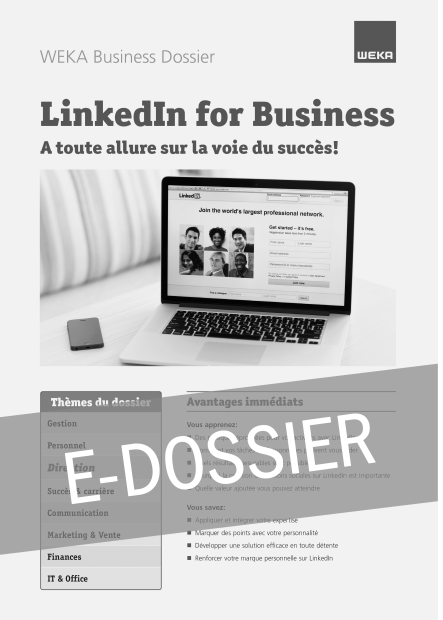 De nombreuses entreprises engagent aujourd'hui une équipe plus ou moins grande de spécialistes des réseaux sociaux pour professionnaliser leur activités, par exemple sur LinkedIn. Indépendamment de cela, les activités des cadres eux-mêmes sur LinkedIn deviennent également de plus en plus importantes. Cela va du positionnement de leur expertise professionnelle personnelle à la possibilité d'attirer l'attention de nouveaux employés et clients potentiels. Que vous travailliez pour une grande entreprise ou une petite organisation, cela n'a pas d'importance. Mais comment utiliser LinkedIn le plus efficacement possible en tant que cadre ? Ce E-Dossier montre comment "Work Smart" fonctionne sur LinkedIn et quelles opportunités, risques et possibilités de mise en œuvre individuelle LinkedIn for Business vous offre en tant que cadre.