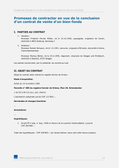 Le précontrat est régi par l'art. 22 CO. Celui-ci permet de fonder l'obligation de conclure un contrat futur. Un tel précontrat est souvent conclu lors de l'achat d'un terrain, mais il n'est valable que s'il est établi en la forme authentique. Profitez de ce modèle et rédigez en toute sécurité juridique une promesse de contracter pour la conclusion d'un contrat de vente d'un bien-fonds.