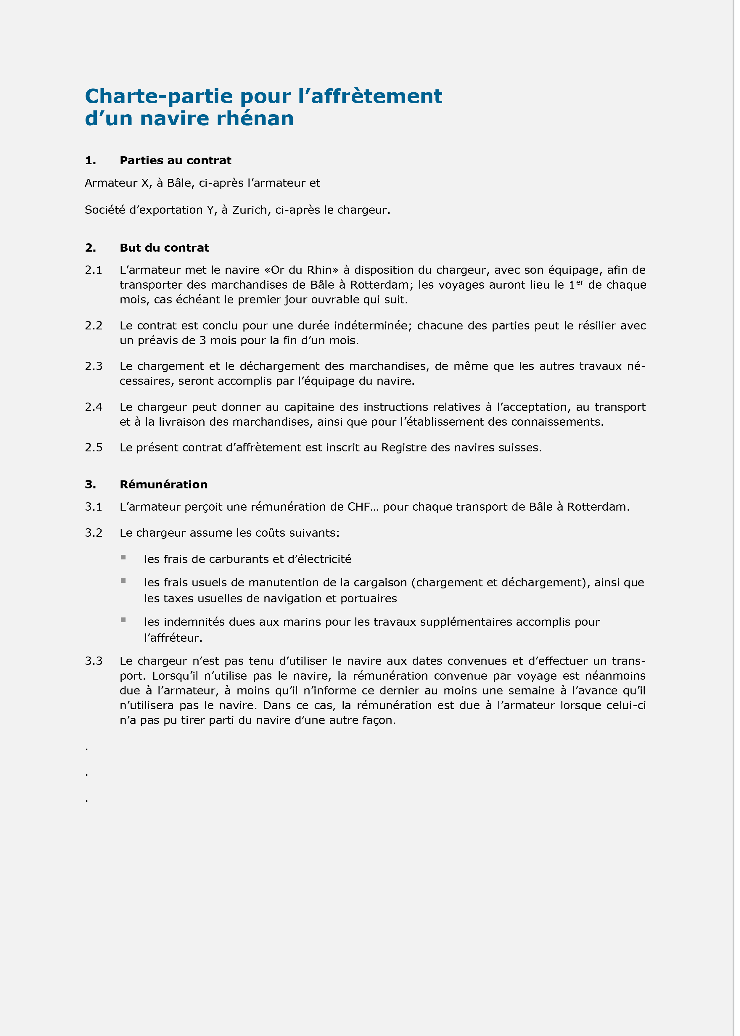 - Modèle de contrat d’affrètement
