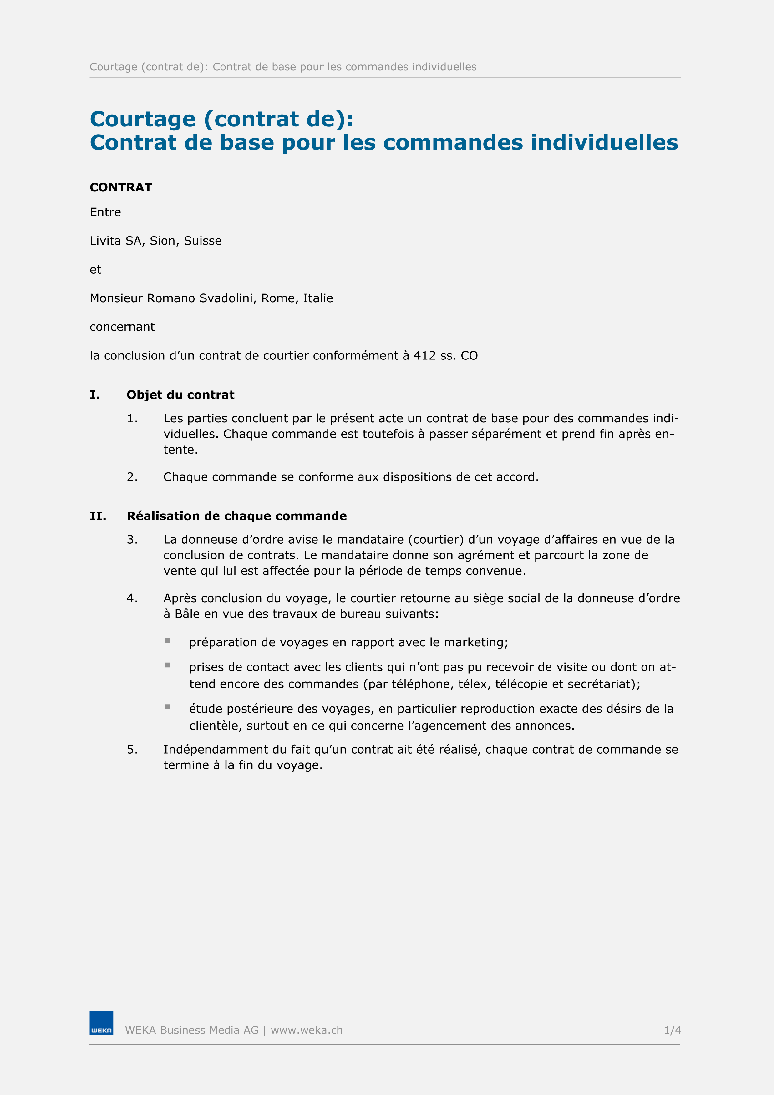 Le contrat de courtage donne comme mandat au courtier de conclure un contrat ou de négocier la conclusion d’un contrat contre une rémunération. En ce qui concerne le contrat de courtage, une question se pose notamment lors de la rémunération du courtier. Dans le contrat de courtage, le mandant s’engage à verser au courtier une rémunération lorsque l’activité de celui-ci entraîne la conclusion de l’affaire envisagée par le mandant, ou apporte une contribution à cette conclusion.