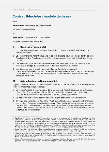 En pratique, la convention et le rapport de fiducie sont généralement, mais pas exclusivement évalués selon les dispositions du droit des mandats et consignés dans un contrat fiduciaire.