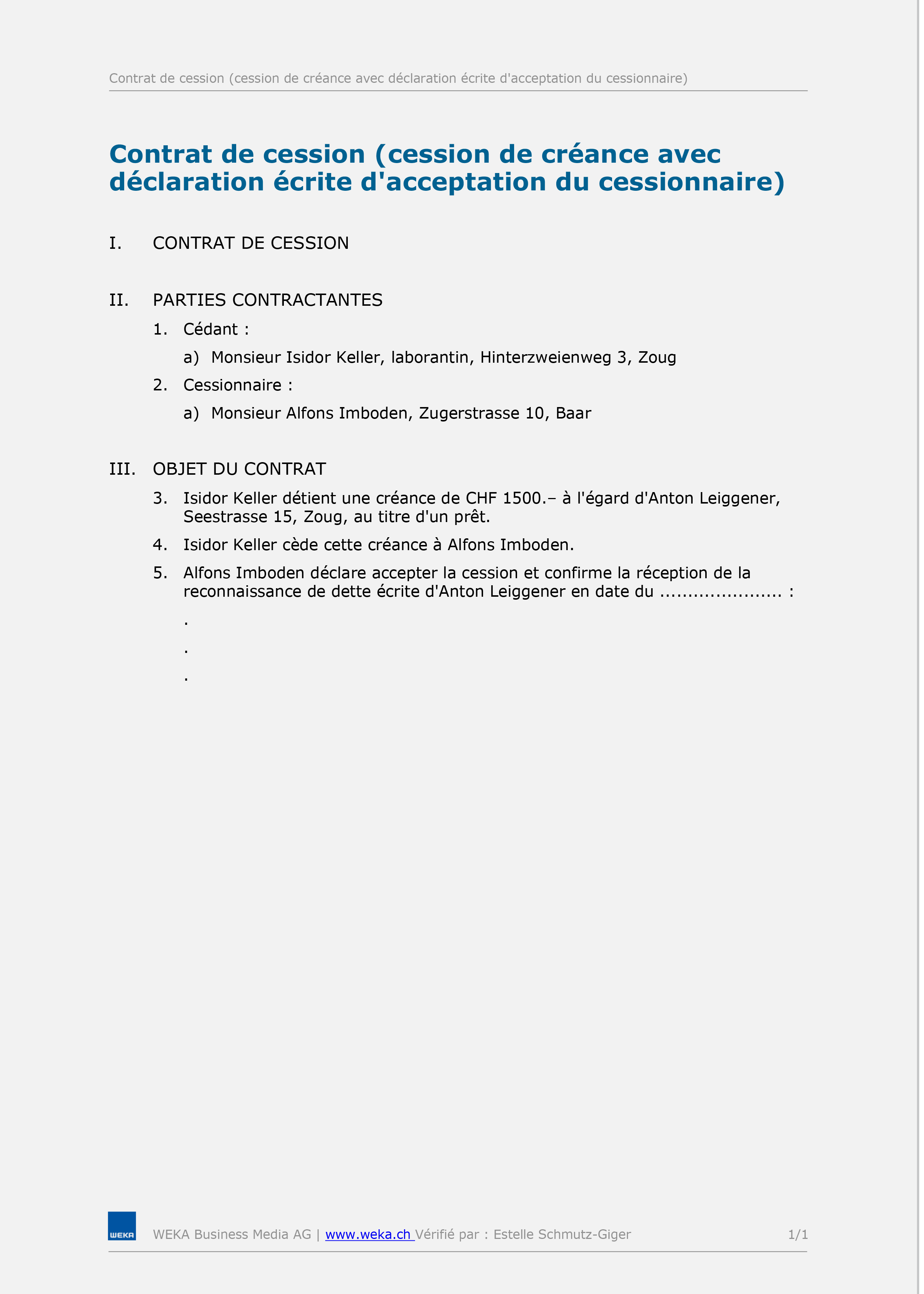 - Vous disposez d'un modèle qui règle en quelques points l'acte juridique de la cession de créance.
