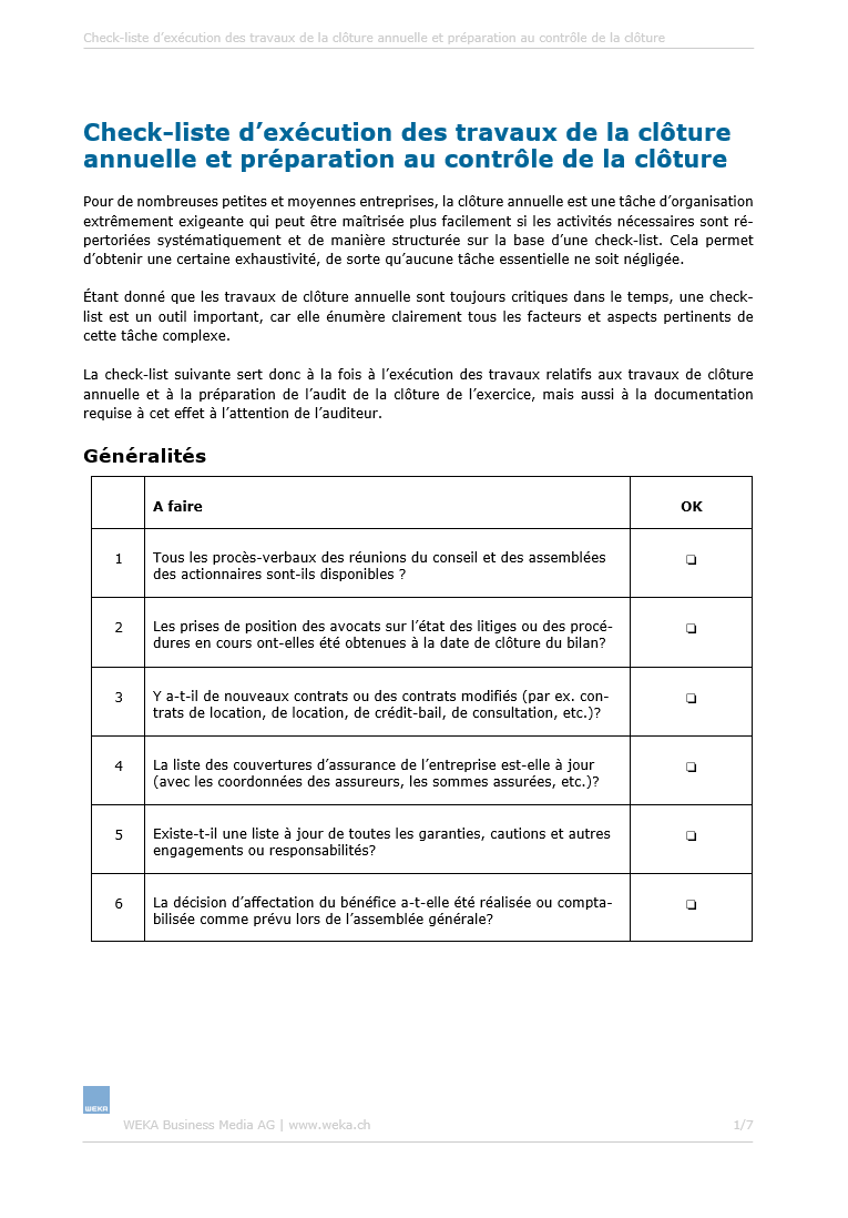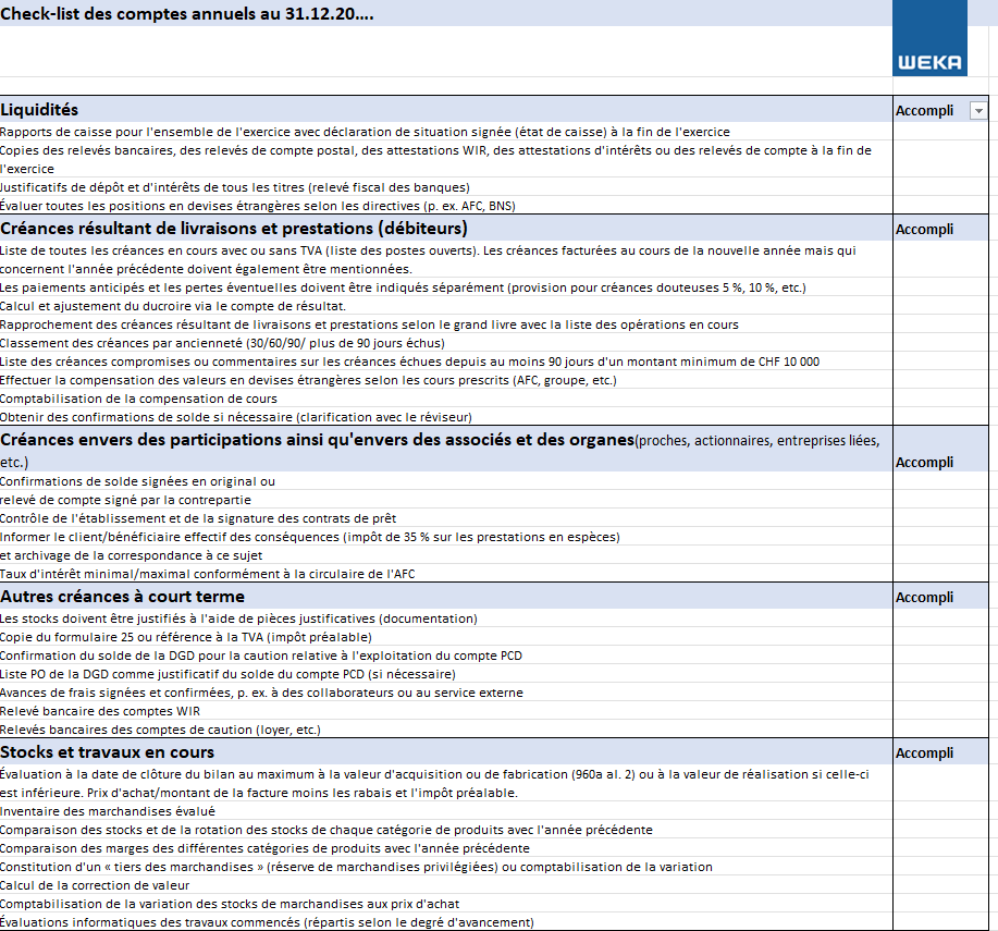 - Check-liste d'exécution des travaux de la clôture annuelle et préparation au contrôle de la clôture