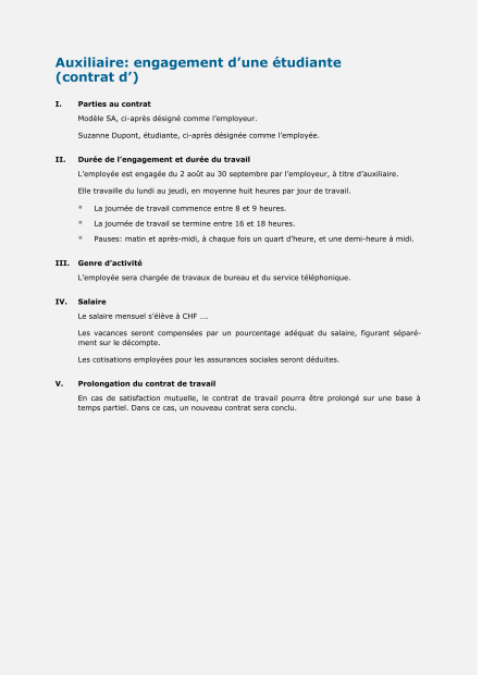- Contrat d'auxiliaire Engagement d’une étudiante