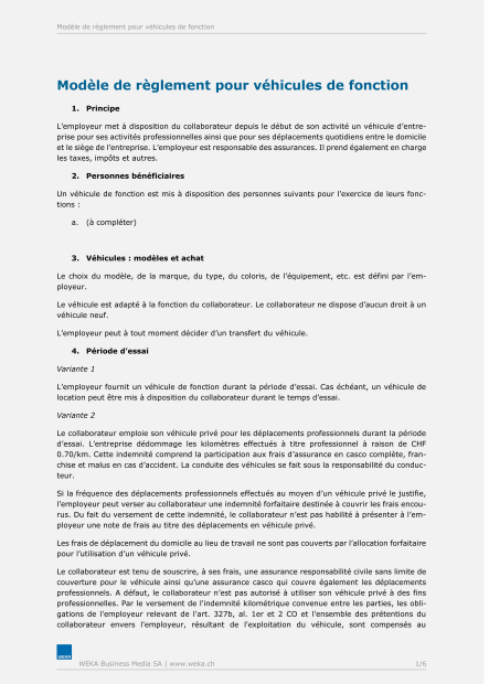 A vous le règlement pour véhicules de fonction, à adapter selon les particularités de chaque employé