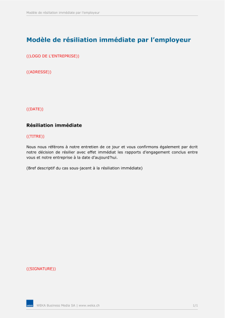 - En tant qu'employeur, vous ne prenez aucun risque juridique inutile en prononçant une résiliation immédiate.