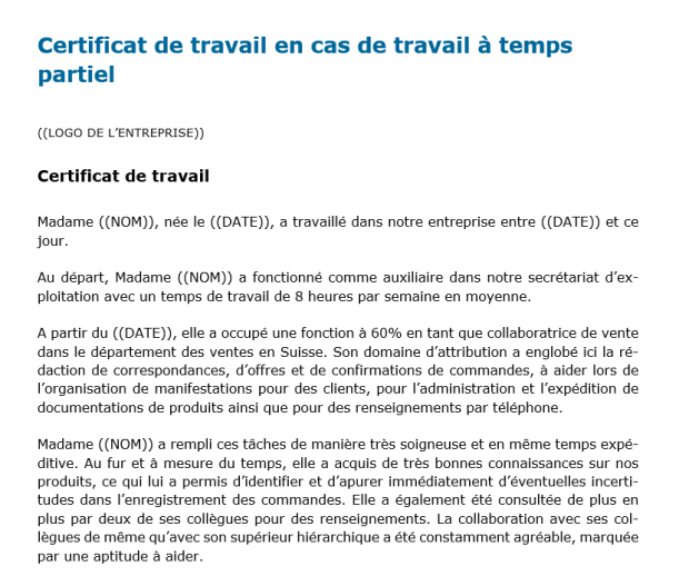 - Vous disposez de 13 modèles de certificats de travail pour différents cas selon le droit suisse.