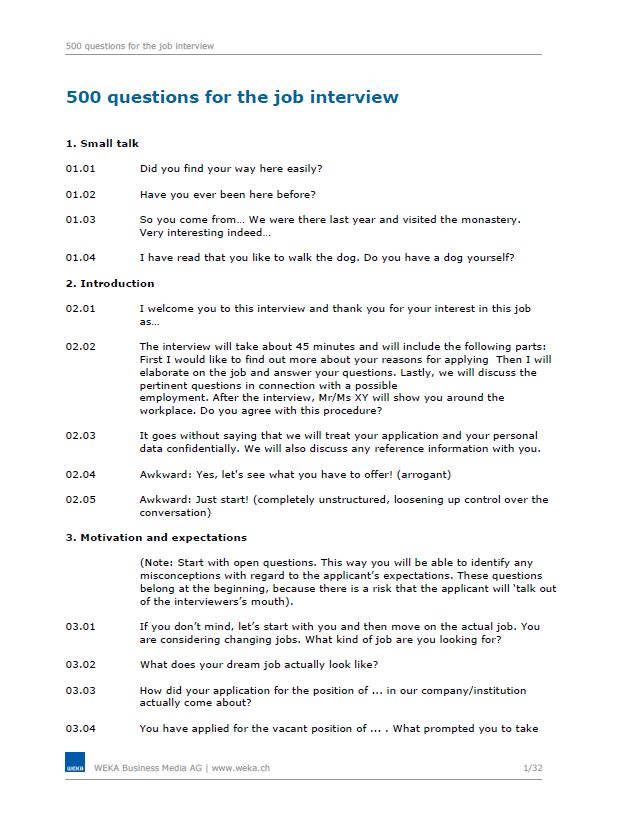 - Vous recevez un éventail de questions incontournables sur tous les thèmes importants de l'entretien de recrutement et ce en français, allemand et anglais.