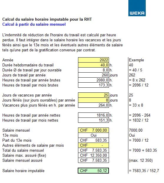 - Outil de calcul pour le décompte de salaire en cas de RHT