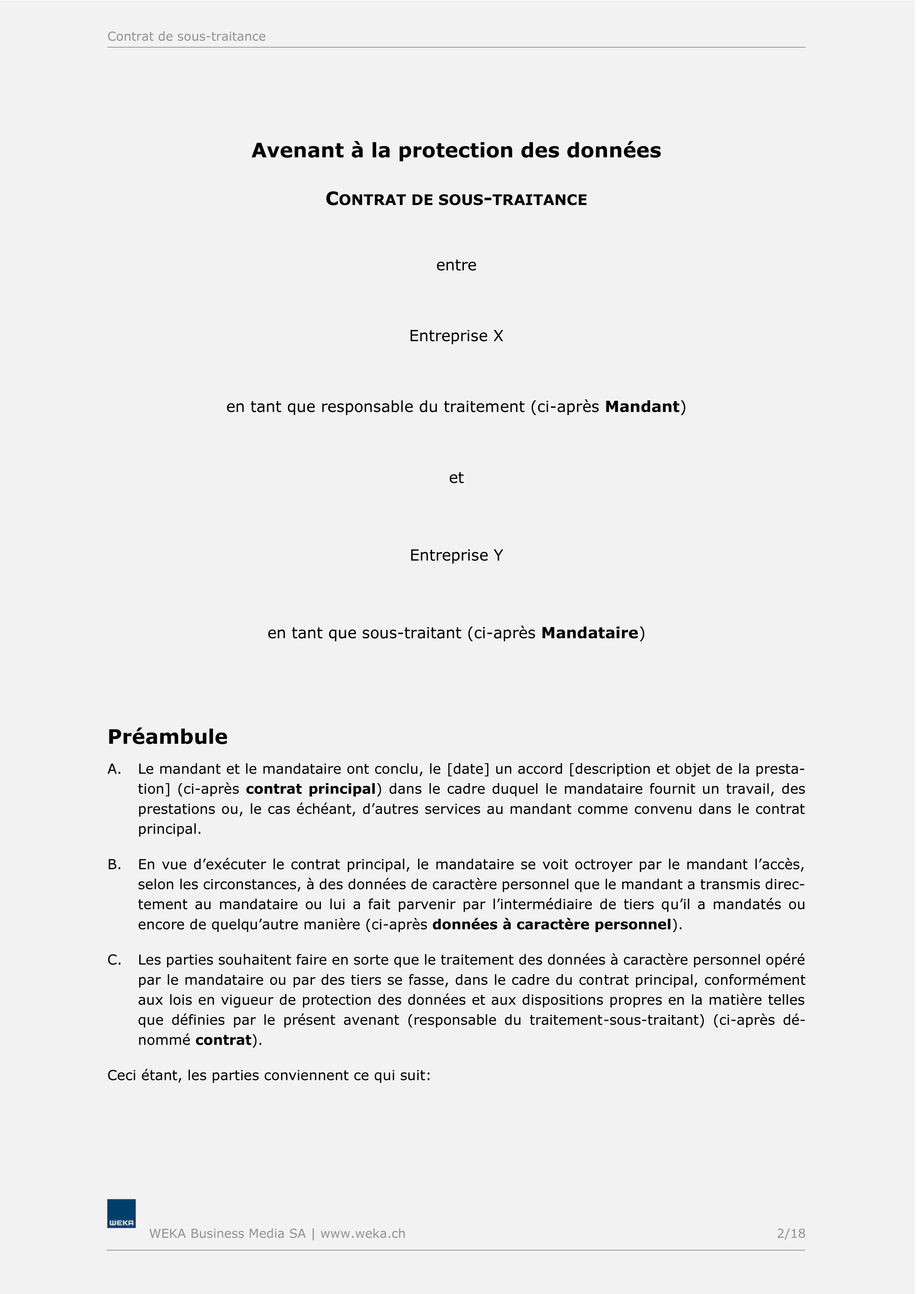 Profitez d'un accès illimité à l'ensemble du savoir-faire juridique. La combinaison d'articles spécialisés et d’aides de travail immédiatement utilisables vous aide dans vos tâches. Vous utilisez non seulement des contenus spécialisés soigneusement élaborés, mais vous travaillez également de manière efficace et en toute sécurité juridique. Les modèles avec des éléments de texte concrets, dont l'actualité et la validité juridique ont été vérifiées, vous permettent une mise en œuvre rapide et constituent une option économique pour la rédaction de contrats. Tous les contrats, modèles et listes de contrôle disponibles sur weka.ch sont des outils vérifiés et éprouvés, qui ont été créés et approuvés par des experts suisses.