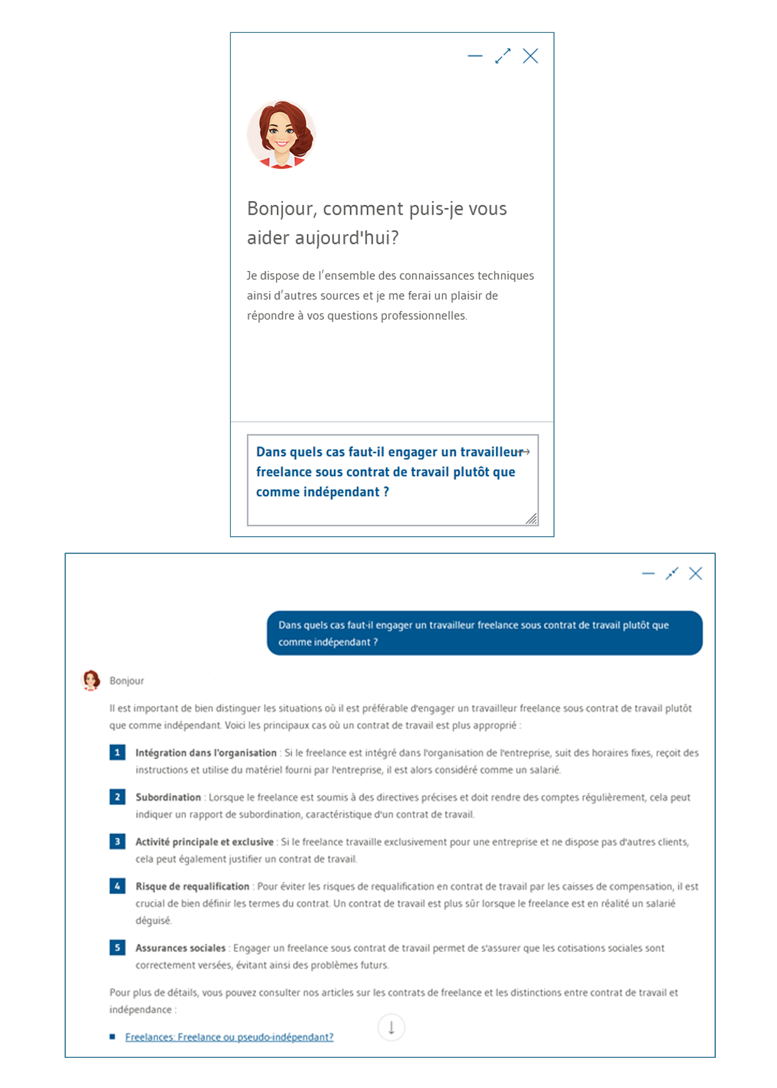 - Chatbot IA «Evi» avec tout le savoir de weka.ch, les lois et les e-books, y compris les sources