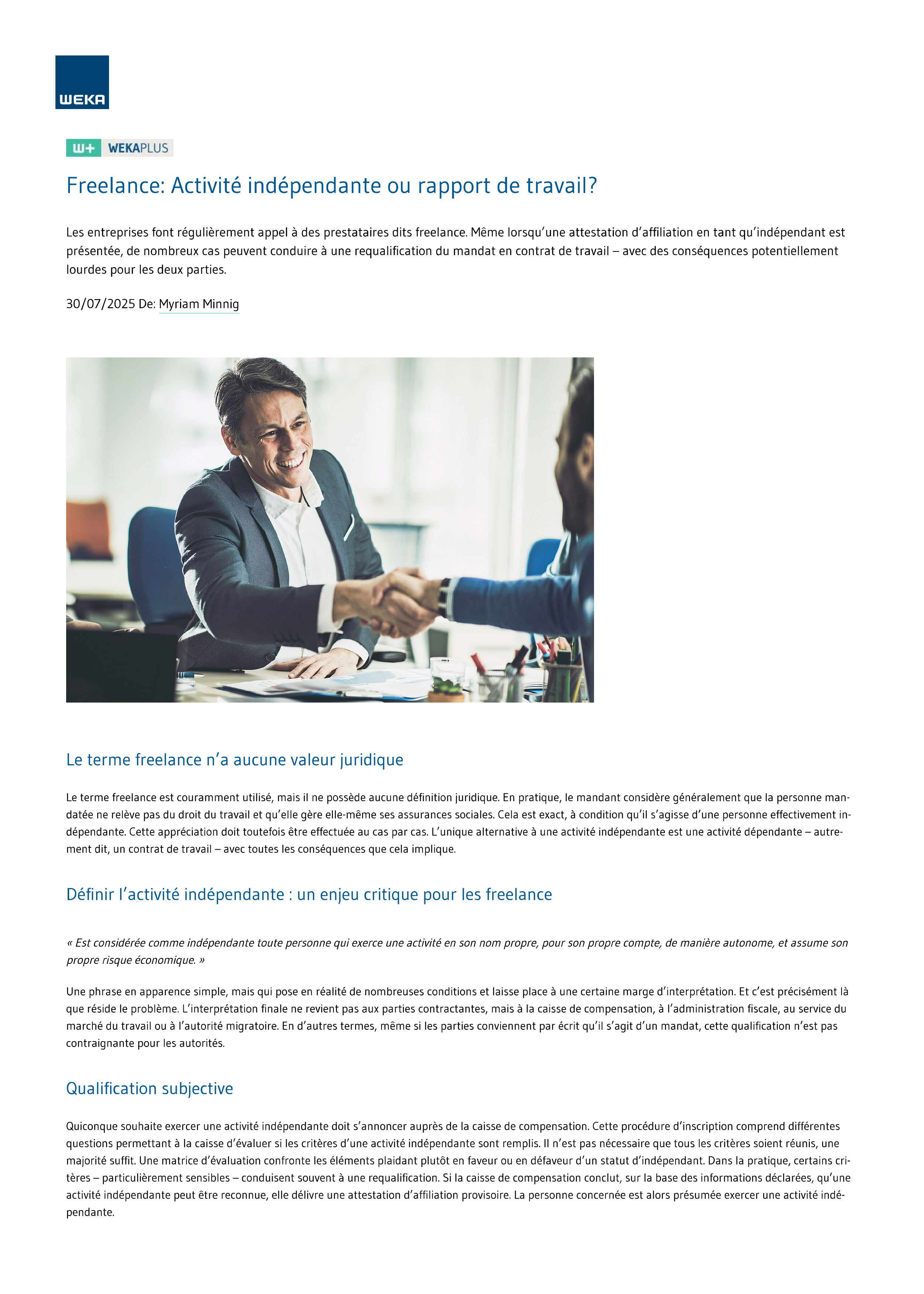 L'édition WEKA PRO Droit & Contrats de la WEKA-Membership vous offre une vaste sélection d’articles spécialisés, d’aides au travail sous forme de modèles et de contrats, divers webinaires en direct et le chatbot IA exclusif «Evi». L'ensemble des connaissances disponibles sur weka.ch est régulièrement mis à jour et actualisé par nos experts.