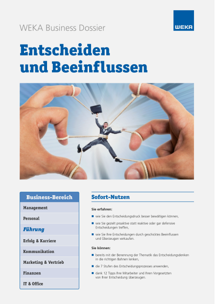 - Sie erfahren, wie Sie Ihre Entscheidungen durch geschicktes Beeinflussen und Überzeugen verkaufen.
