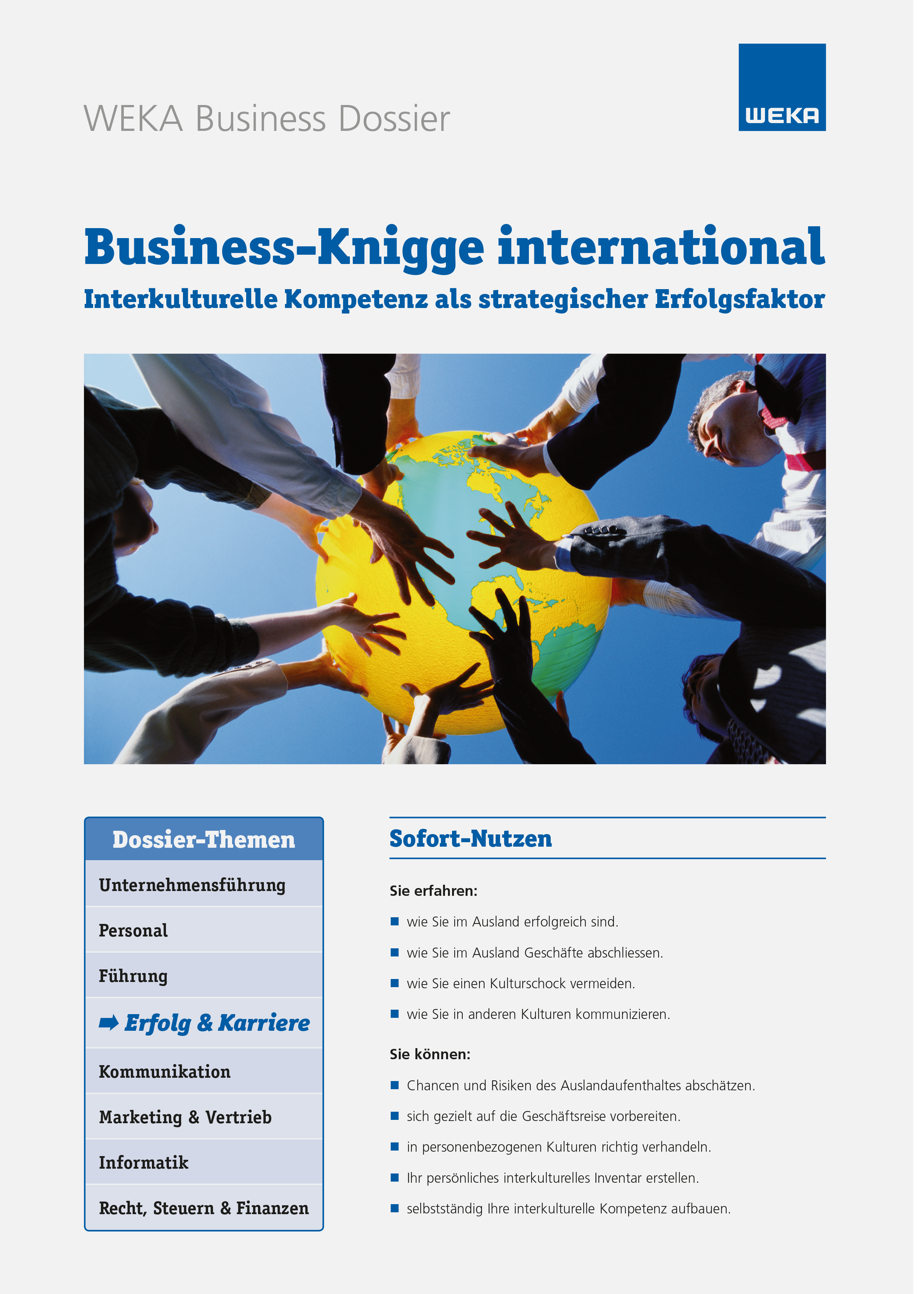 In diesem Business Dossier werden Sie sich nicht mit einer Patentrezeptsammlung von «Dos and Don’ts» begnügen, sondern den Hebel tiefer ansetzen und das Bewusstsein schärfen, worum es im internationalen Business aus der Sicht «Andere Länder, andere Sitten» überhaupt geht.