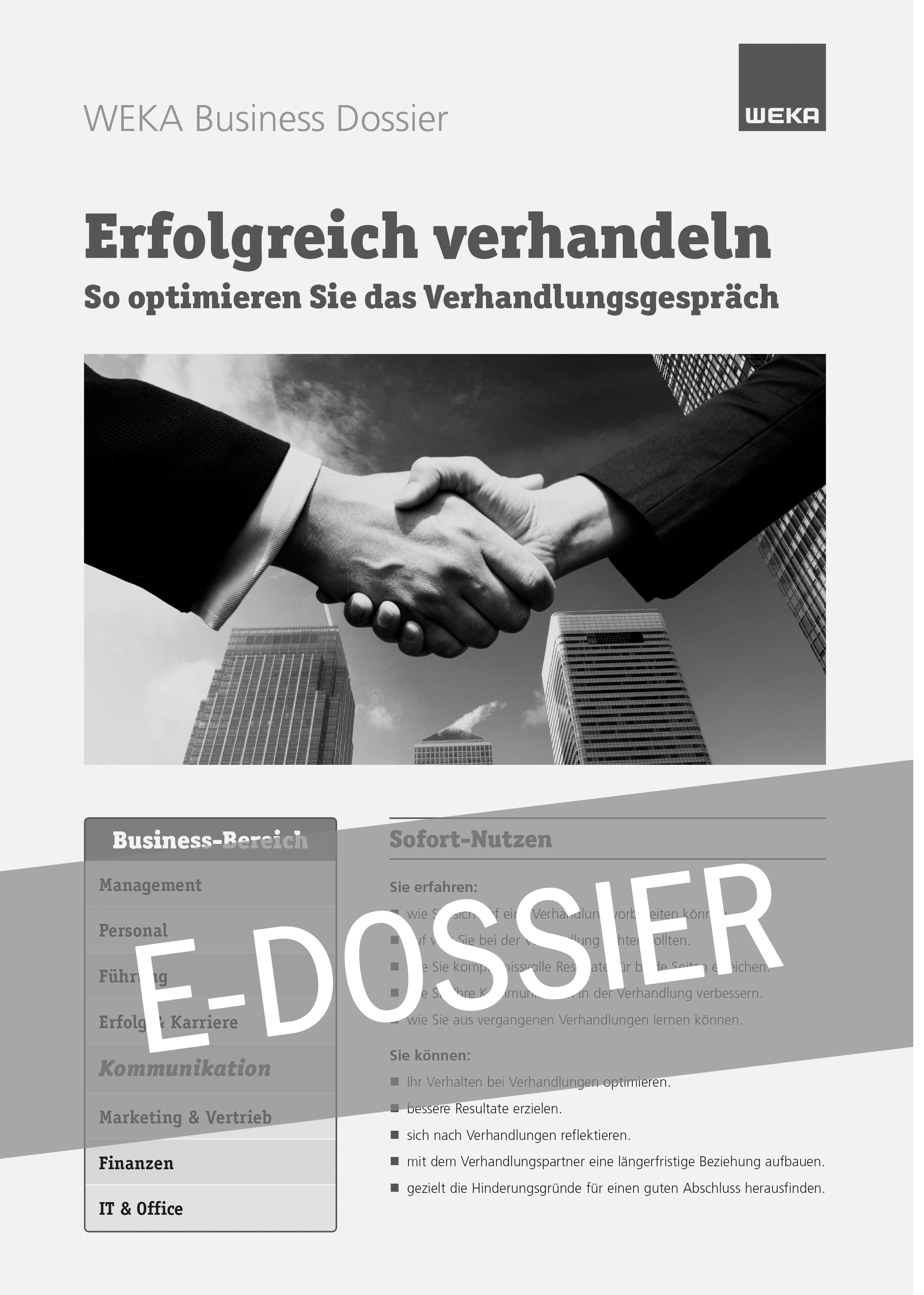 Jeder von uns muss ständig verhandeln. Sei dies mit Kunden, mit Lieferanten, Partnern, Vorgesetzten oder Kollegen. Dieses E-Dossier beschäftigt sich mit der Frage, wie Sie Ihr Gesprächsverhalten in Verhandlungen optimieren können, um bessere und längerfristige Resultate zu erzielen.