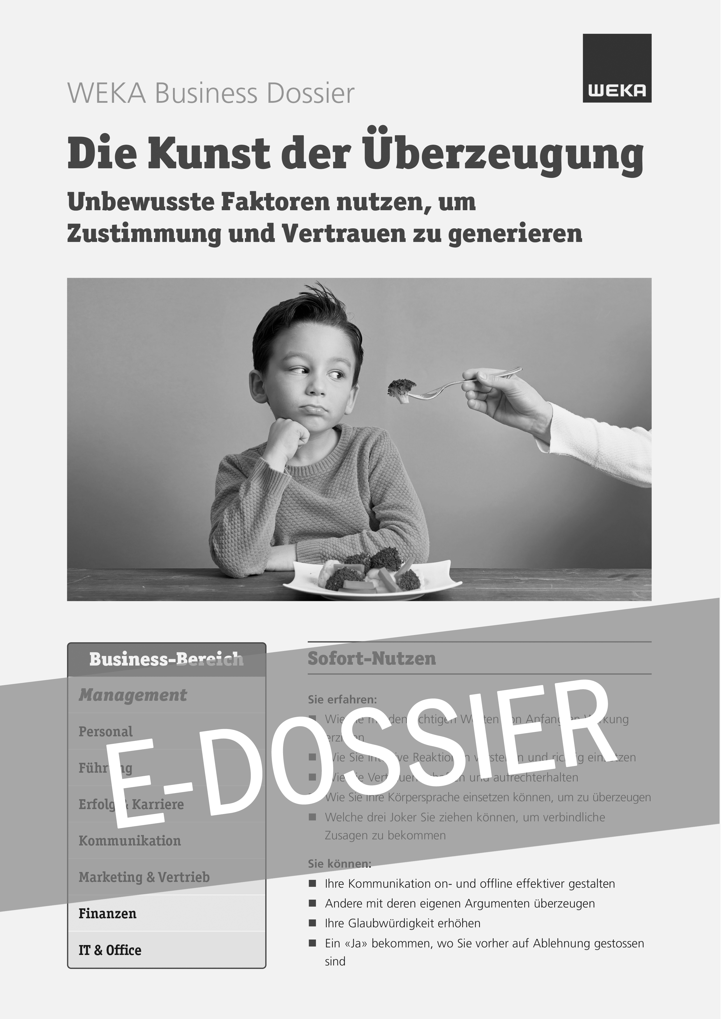 Fällt es Ihnen schwer, Ihre Ideen durchzusetzen? Haben Sie manchmal das Gefühl, mit einer Wand zu reden, weil Ihre Argumente nicht gehört werden? Wenn Sie diese Fragen mit Ja beantworten, werden Sie in diesem Dossier wertvolle praktische Tipps und Methoden erlernen, um andere davon zu überzeugen, einem Standpunkt zuzustimmen oder einer bestimmten Vorgehensweise zu folgen.