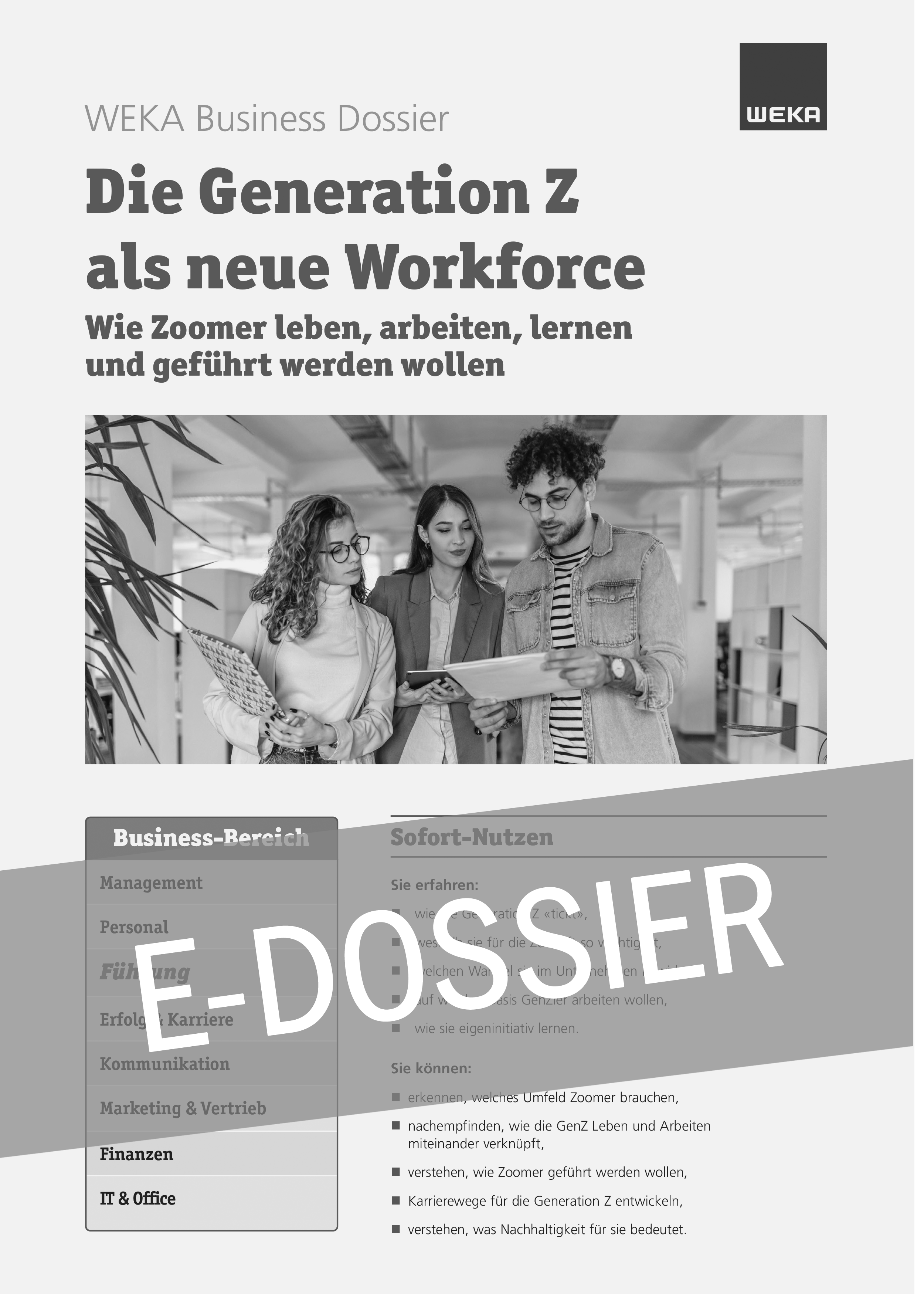 Globale Unsicherheiten, digitale Durchdringung und ein tiefgreifender gesellschaftlicher Wandel prägen die junge Generation wie keine zuvor. Die Generation Z lebt anders, lernt anders und arbeitet anders – und genau darin liegt ihr grosses Potenzial für Unternehmen. Dieses Dossier unterstützt Sie dabei, die Denk- und Arbeitsweisen der GenZ zu verstehen und deren Stärken strategisch einzusetzen.