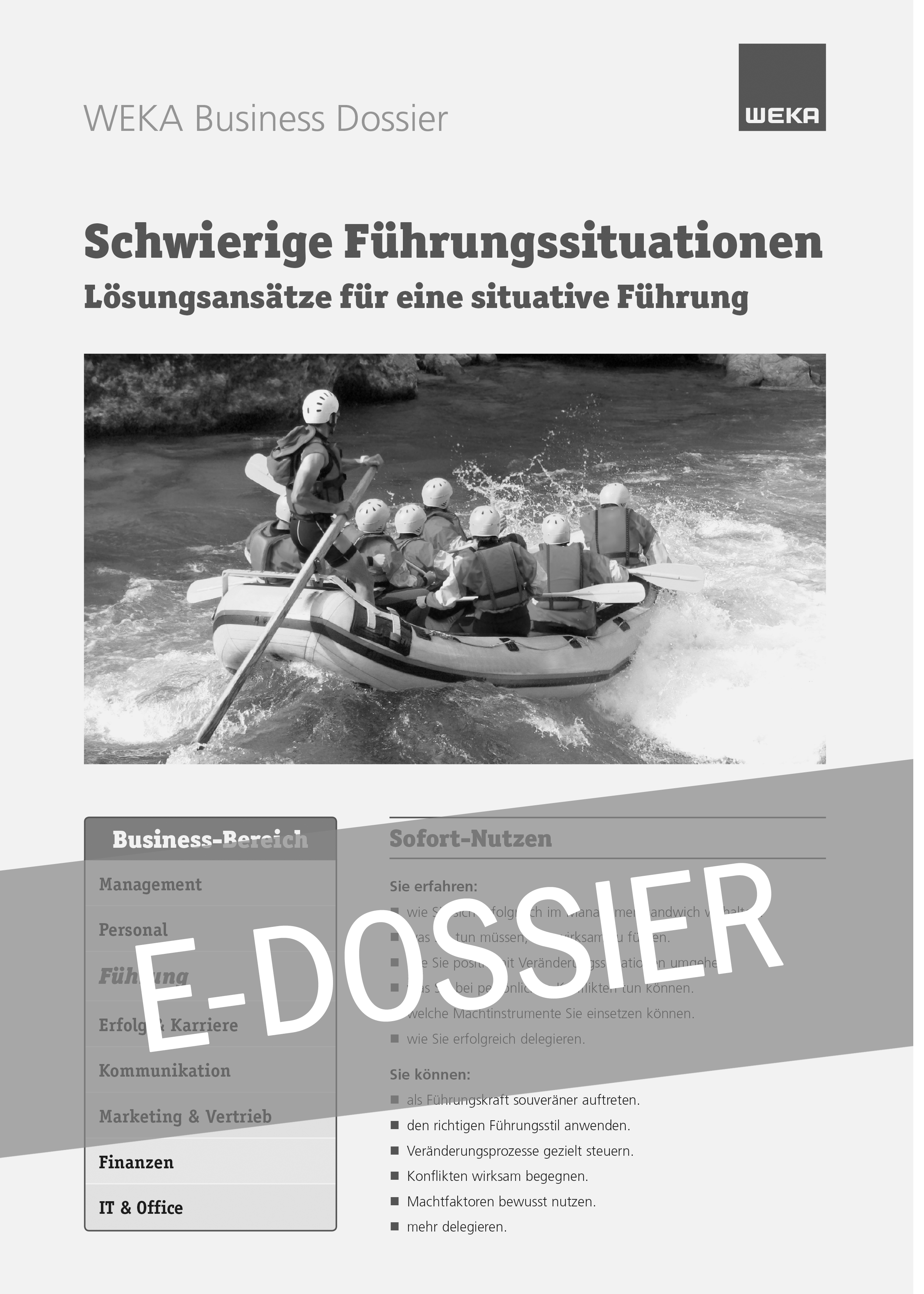 Wenn Sie Ihren Führungsalltag betrachten, dann stellen Sie sicher fest, dass sich in den letzten Jahren einiges verändert hat. Die Leistungsanforderungen haben in allen Bereichen zugenommen. Sie müssen in kürzerer Zeit und oftmals mit weniger Mitarbeitern mehr erreichen. Qualifizierte Führungspersönlichkeiten müssen auch in schwierigen Situationen alles im Griff haben. Dieses E-Dossier gibt Ihnen eine Antwort darauf, wie Sie die sieben schwierigsten Situationen als Führungskraft meistern werden und Ihren täglichen Herausforderungen als Führungskraft erfolgreich begegnen.