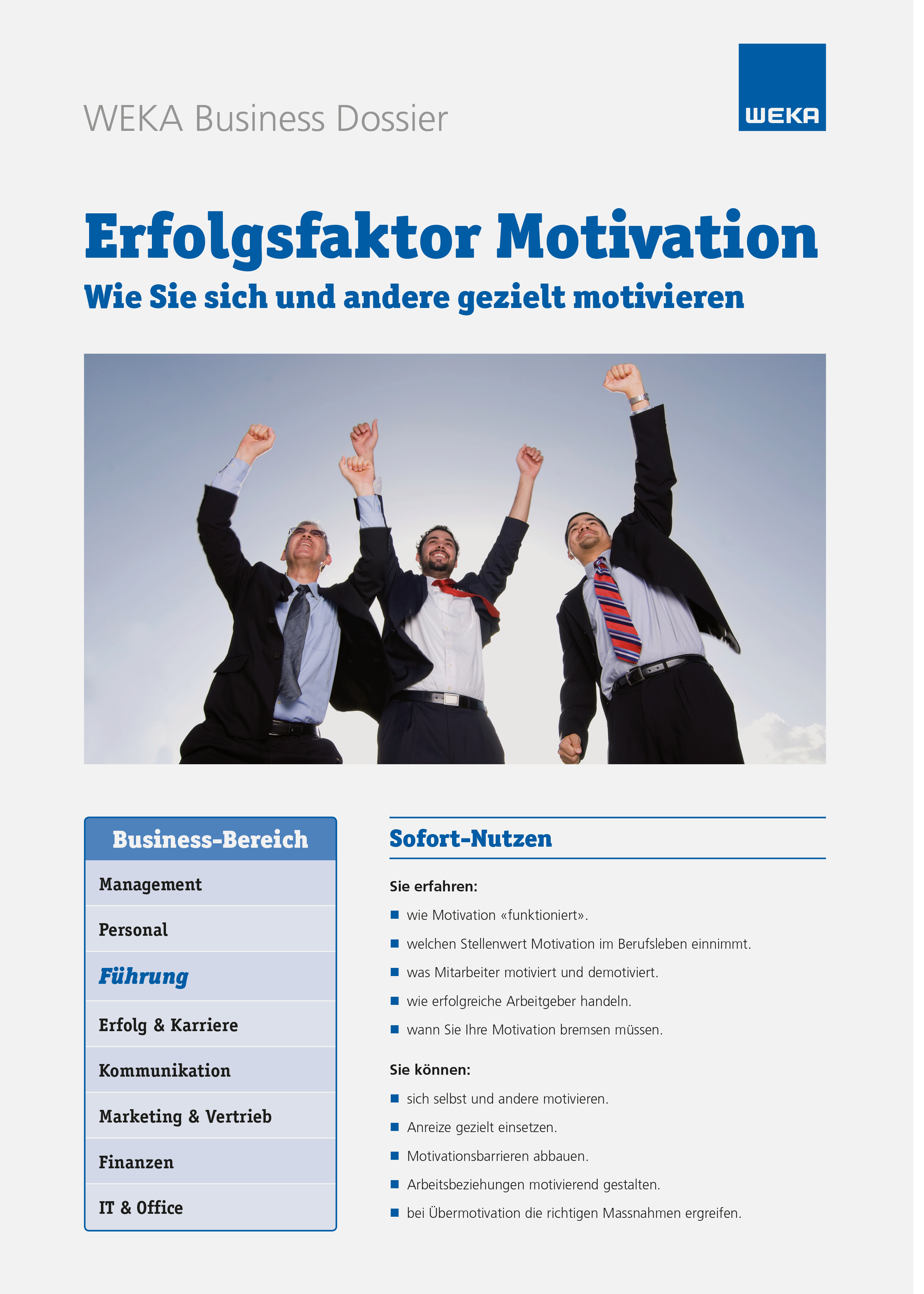 Für Unternehmen sind motivierte Mitarbeiter ein Gewinn in jeder Hinsicht, denn sie sind produktiver und von sich aus bemüht, gute Arbeitsresultate abzuliefern. Allein schon aus ökonomischen Interessen versuchen sie, möglichst motivierte Mitarbeiter anzuziehen und im Unternehmen zu halten. So unterschiedlich wie die Menschen sind, so vielfältig sind auch die Verfahren, sie zu motivieren. Der einfachste Weg ist, sich für seine Mitmenschen ehrlich zu interessieren und allfällige Motivationsbarrieren zu entfernen.