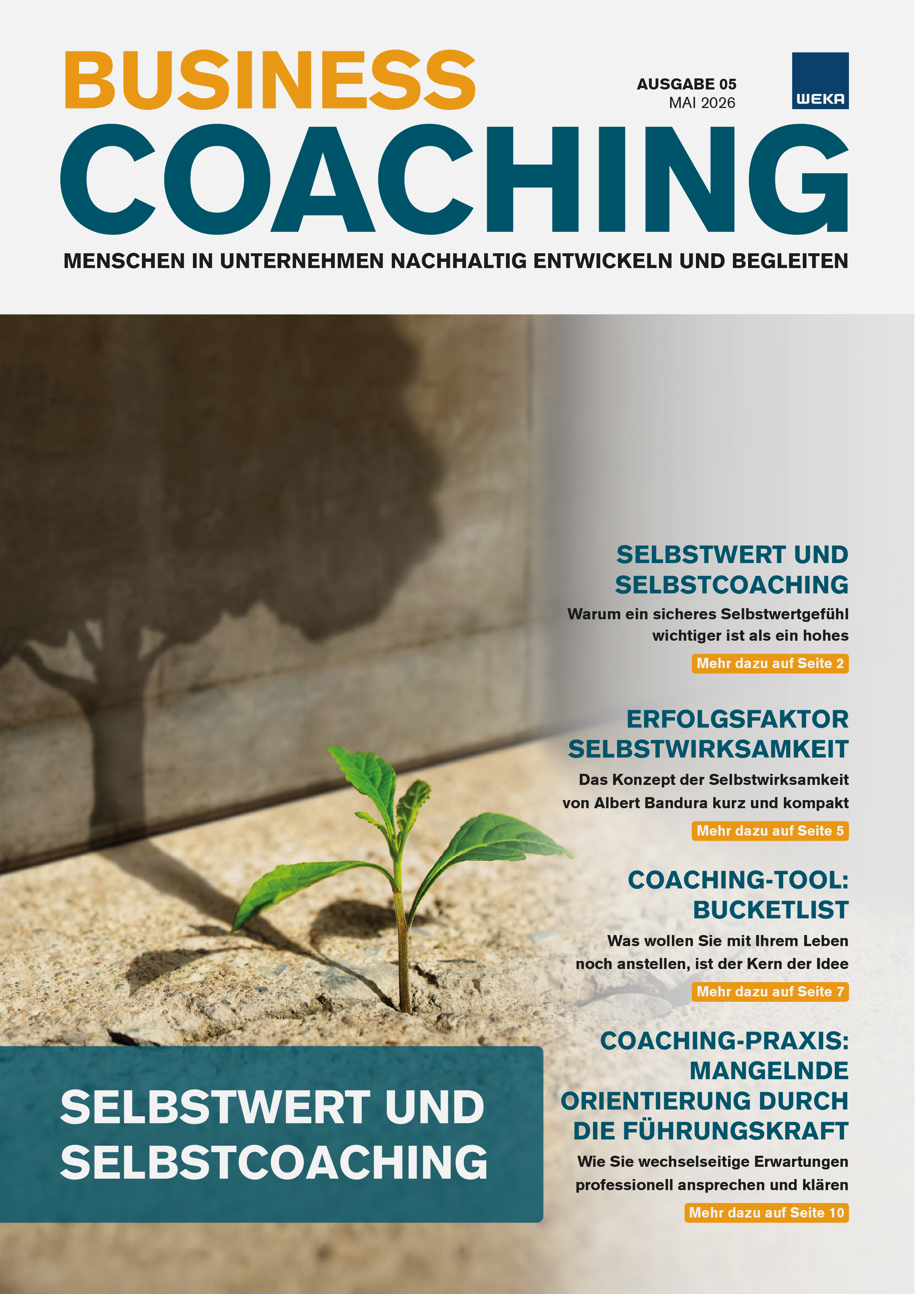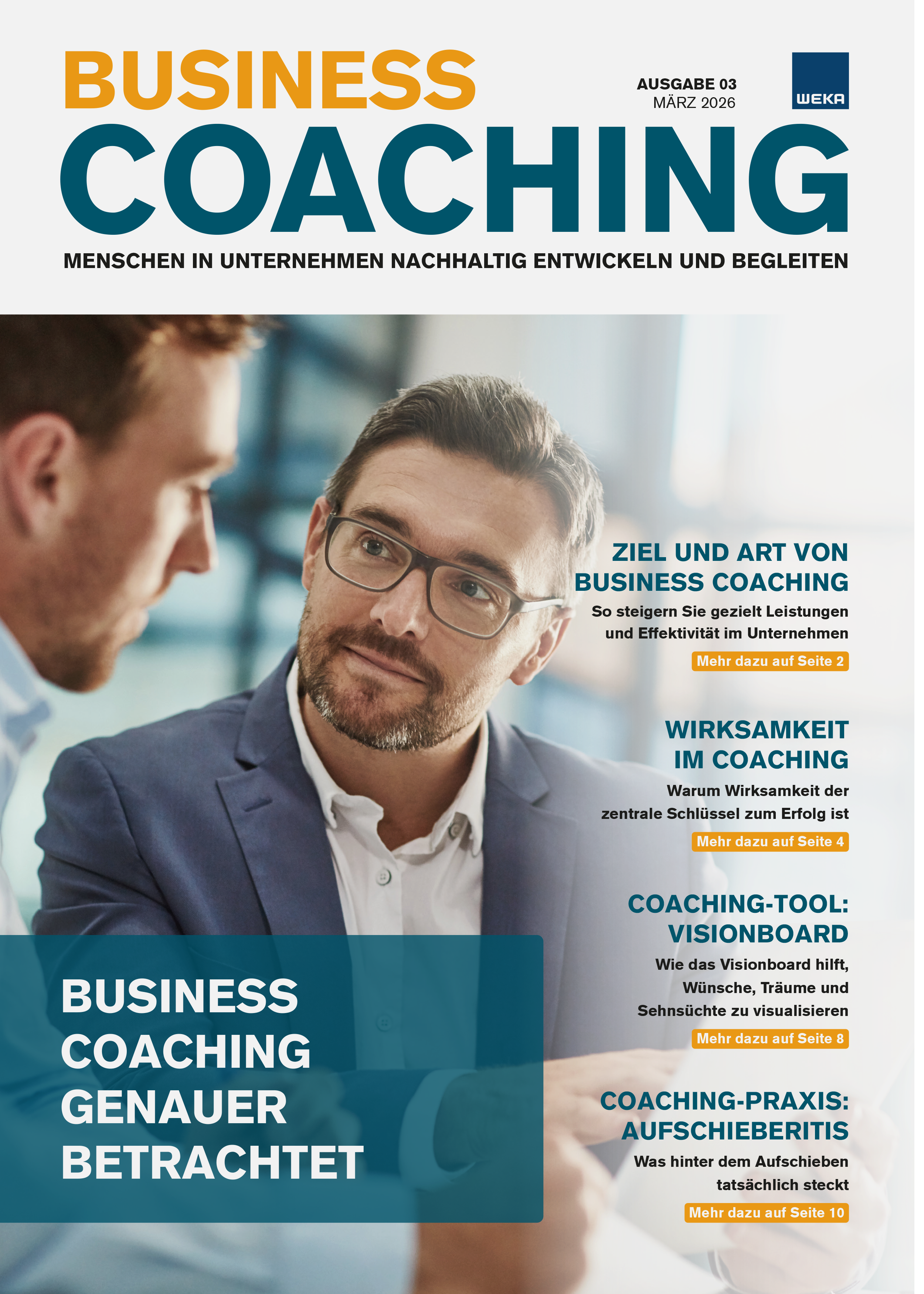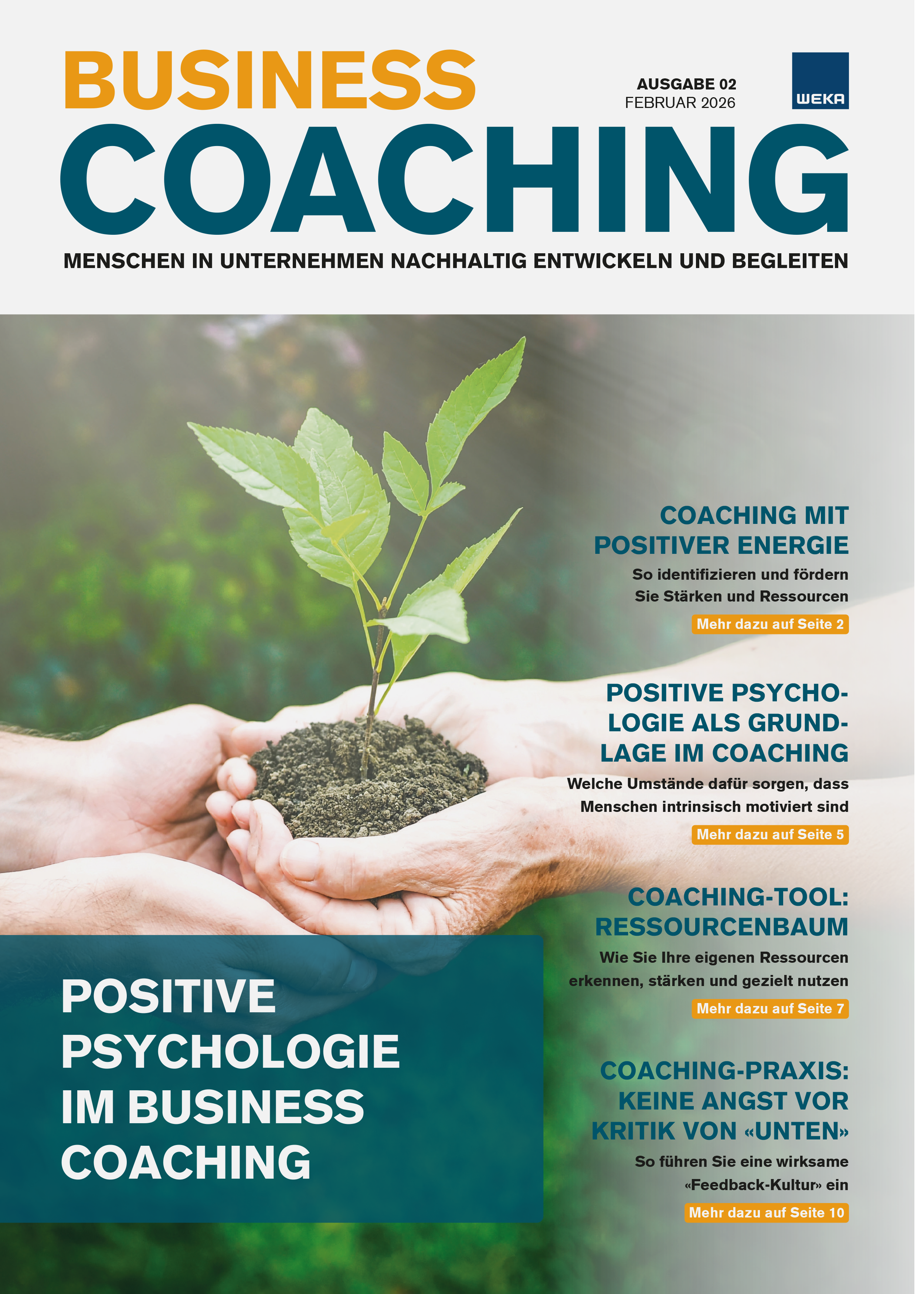 Das Impuls-Magazin «Business Coaching» begleitet Führungskräfte, ihre Mitarbeitenden und ihr Unternehmen bei allen Veränderungen und unterstützt sie mit Insights von Fachexperten und Berichten aus der Praxis bei der Ausarbeitung von zukunftsorientierten Lösungen. In jeder der 10 Ausgaben pro Jahr wird zudem ein konkretes Coaching-Tool vorgestellt.