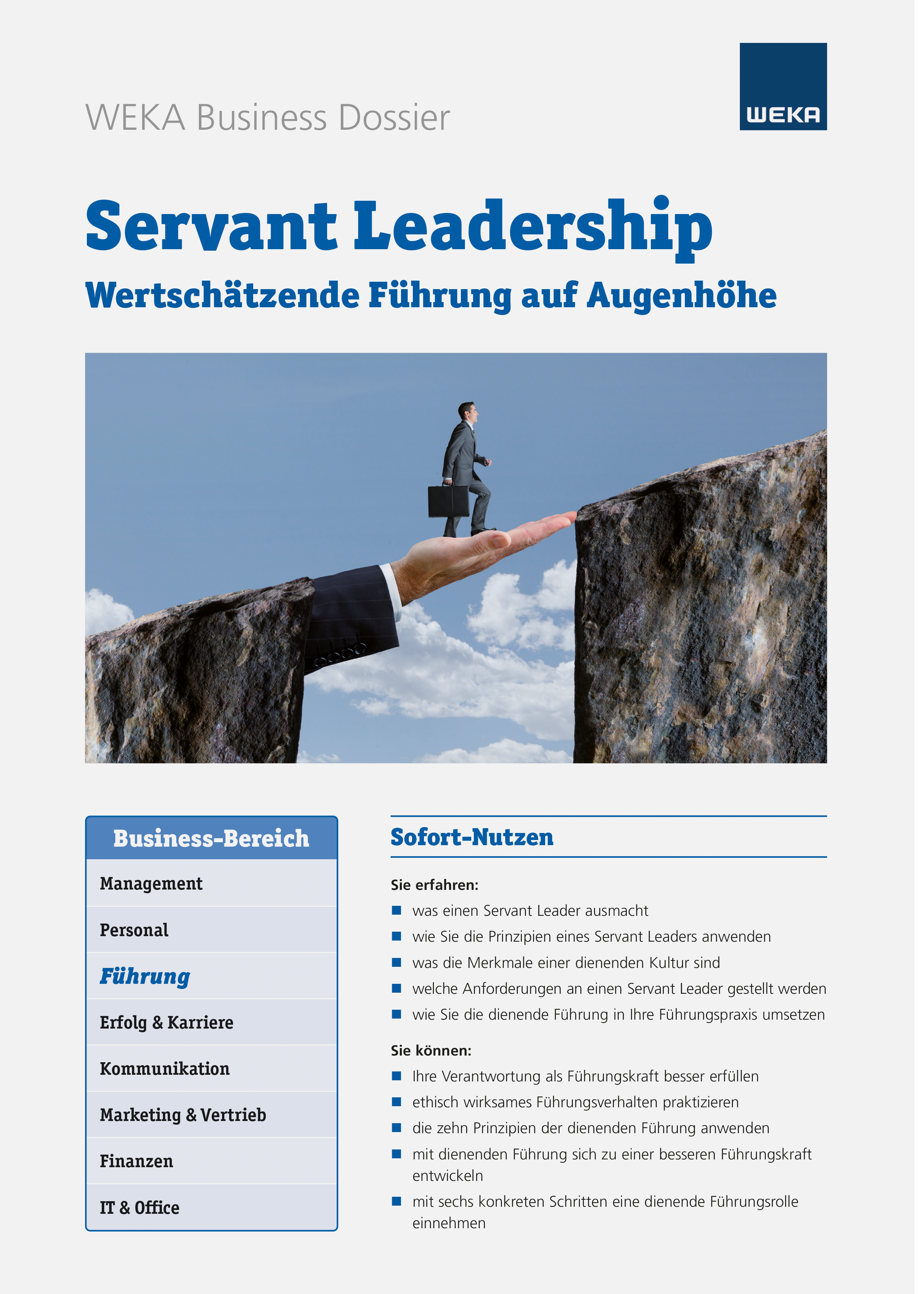 - Sie lernen, wie Sie die dienende Führung in Ihrer Führungspraxis erfolgreich umsetzen.