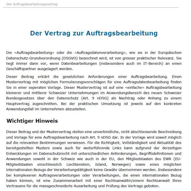 - Mustervertrag zu Auftragsdatenbearbeitung nach nDSG (17 Seiten)