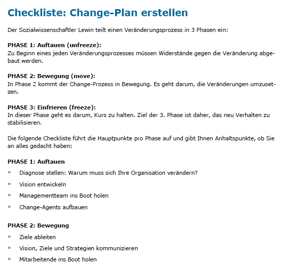- Erfolgsregeln für Change-Management – Checkliste