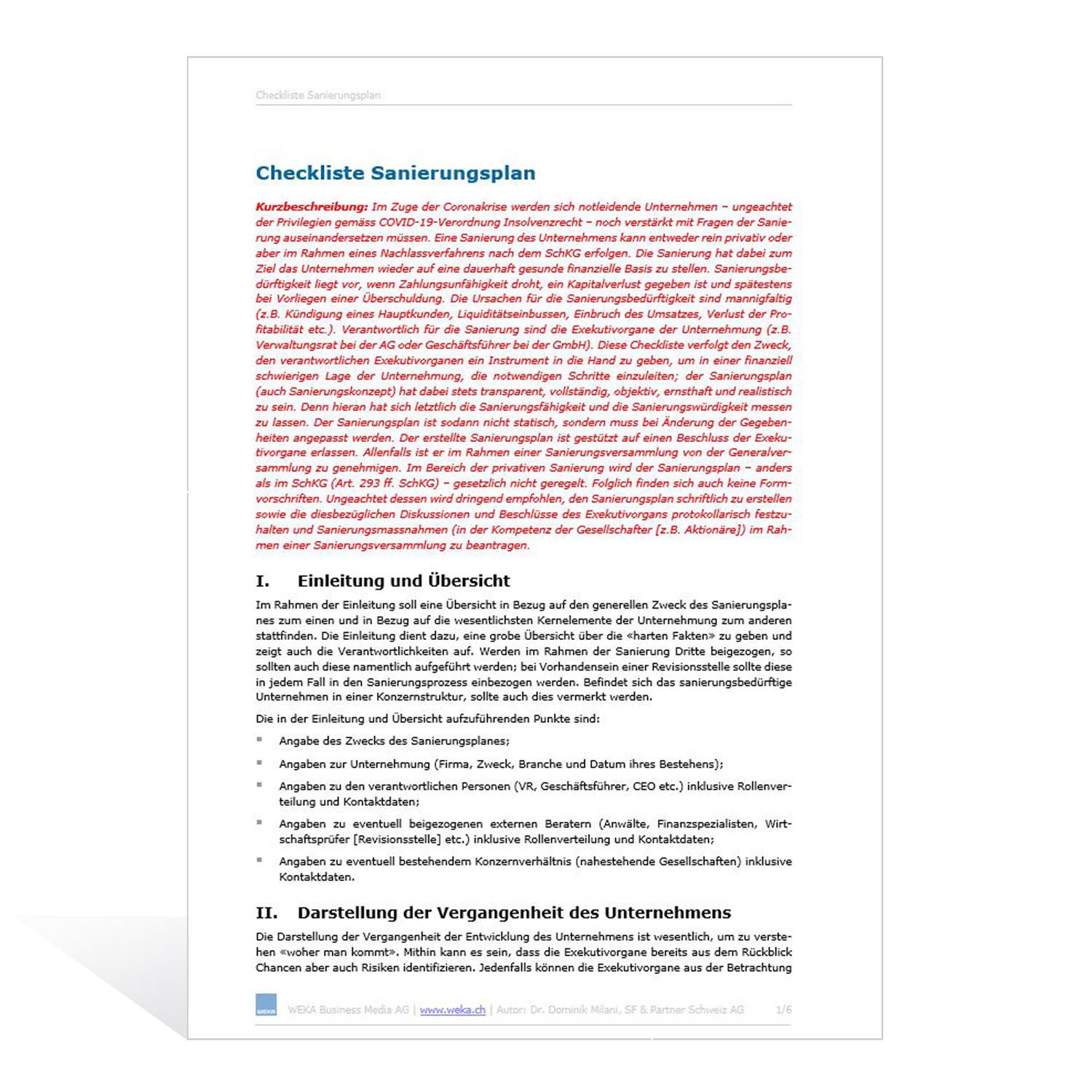 Sparen Sie in einer schwierigen Lage Zeit und reduzieren Sie den Aufwand bei der Sanierung Ihres Unternehmens! In diesem Download-Paket finden Sie von Schweizer Anwälten geprüfte Beschlüsse und eine Checkliste für das erfolgreiche Bestehen dieser schwierigen Lage. So sind Sie ausgerüstet für den Fall, dass Sie für die Sanierung der Gesellschaft verantwortlich sind.