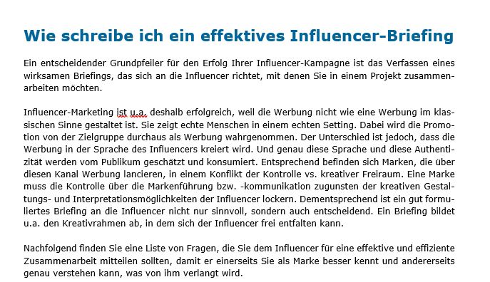 - Merkblatt Wie schreibe ich ein Influencer-Briefing